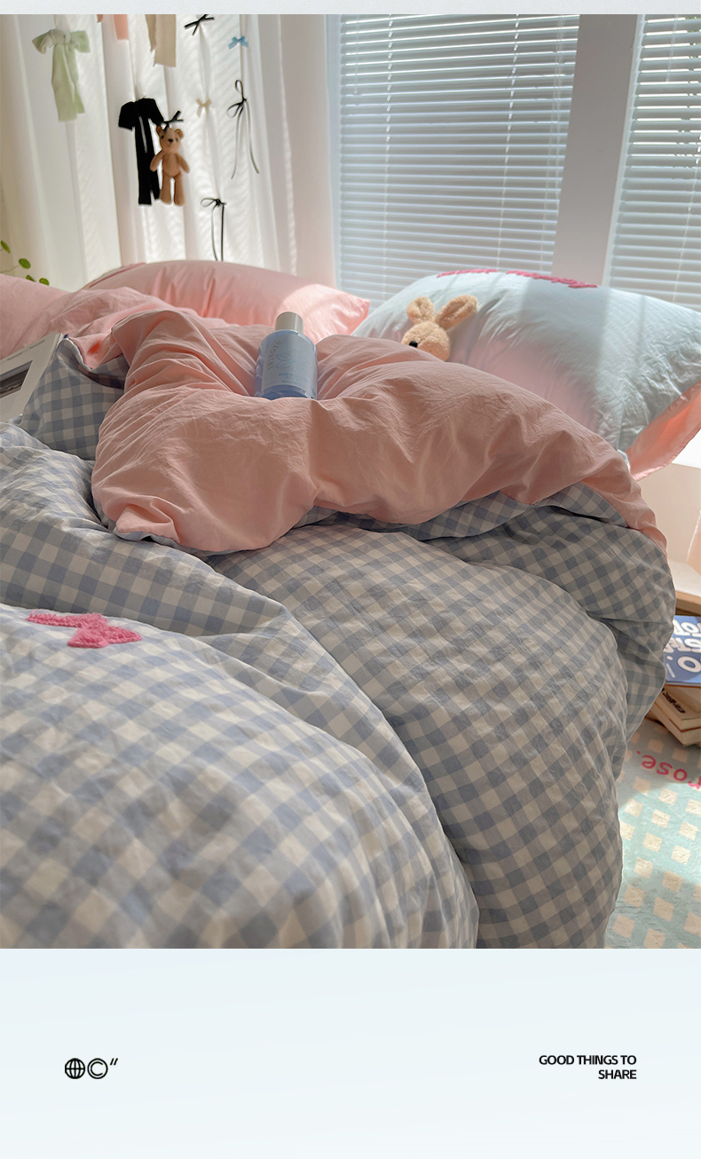 (总)顾里家纺 2024新款格子蝴蝶结毛巾绣牛奶绒四件套,粉格蝴蝶结,粉蓝蝴蝶结,黄格蝴蝶结,蓝格蝴蝶结,绿格蝴蝶结