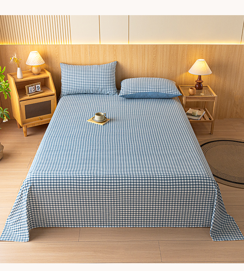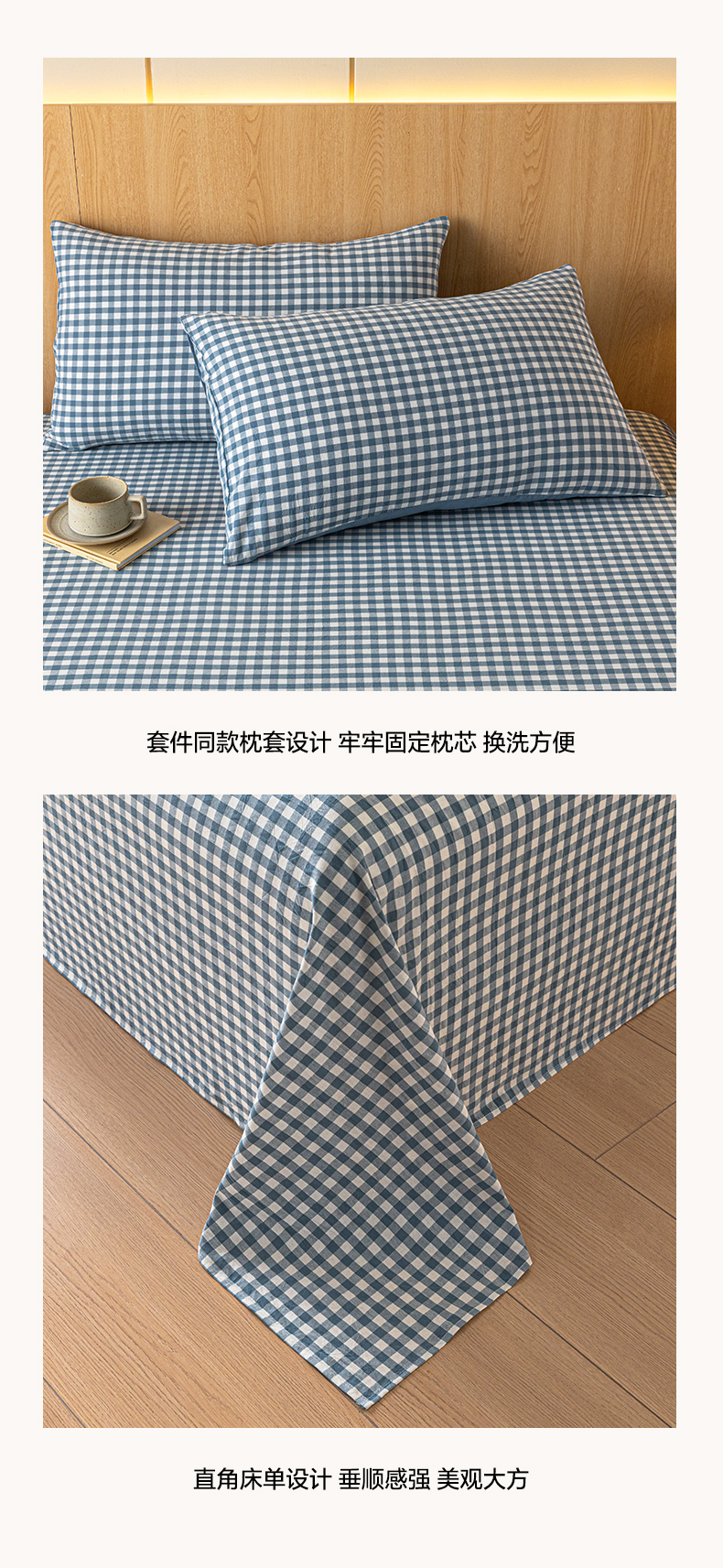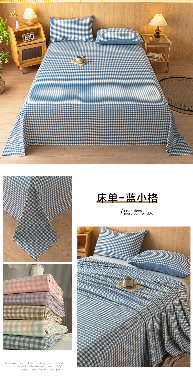 商品名称:雅居纺家纺 2024新款全棉色织水洗棉单床单 床单-蓝小格