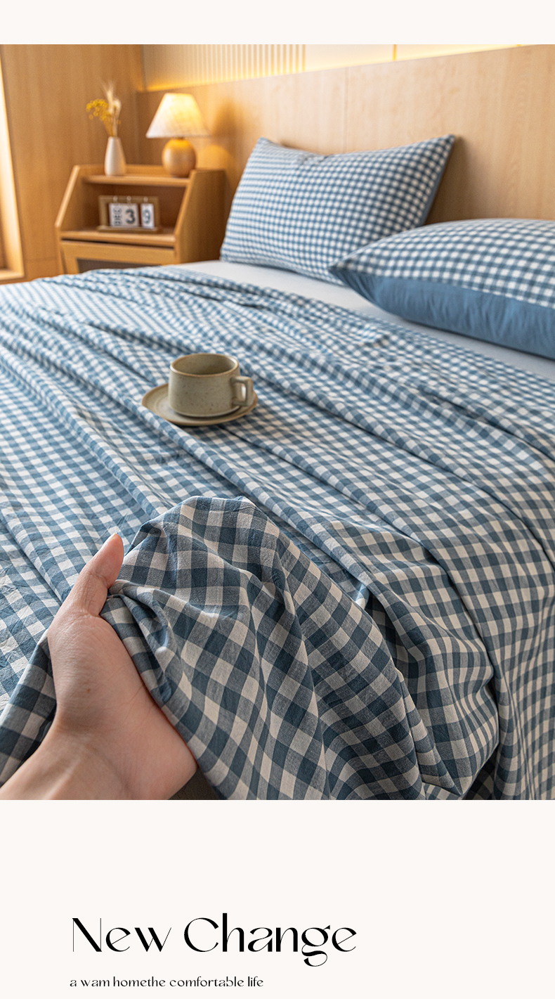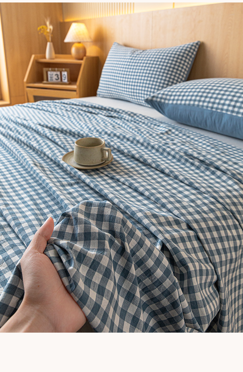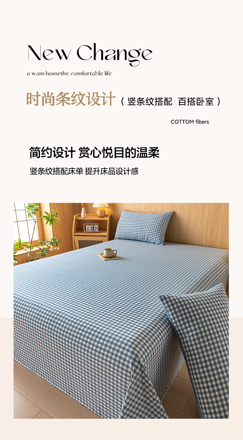 商品名称:雅居纺家纺 2024新款全棉色织水洗棉单床单 床单-蓝小格
