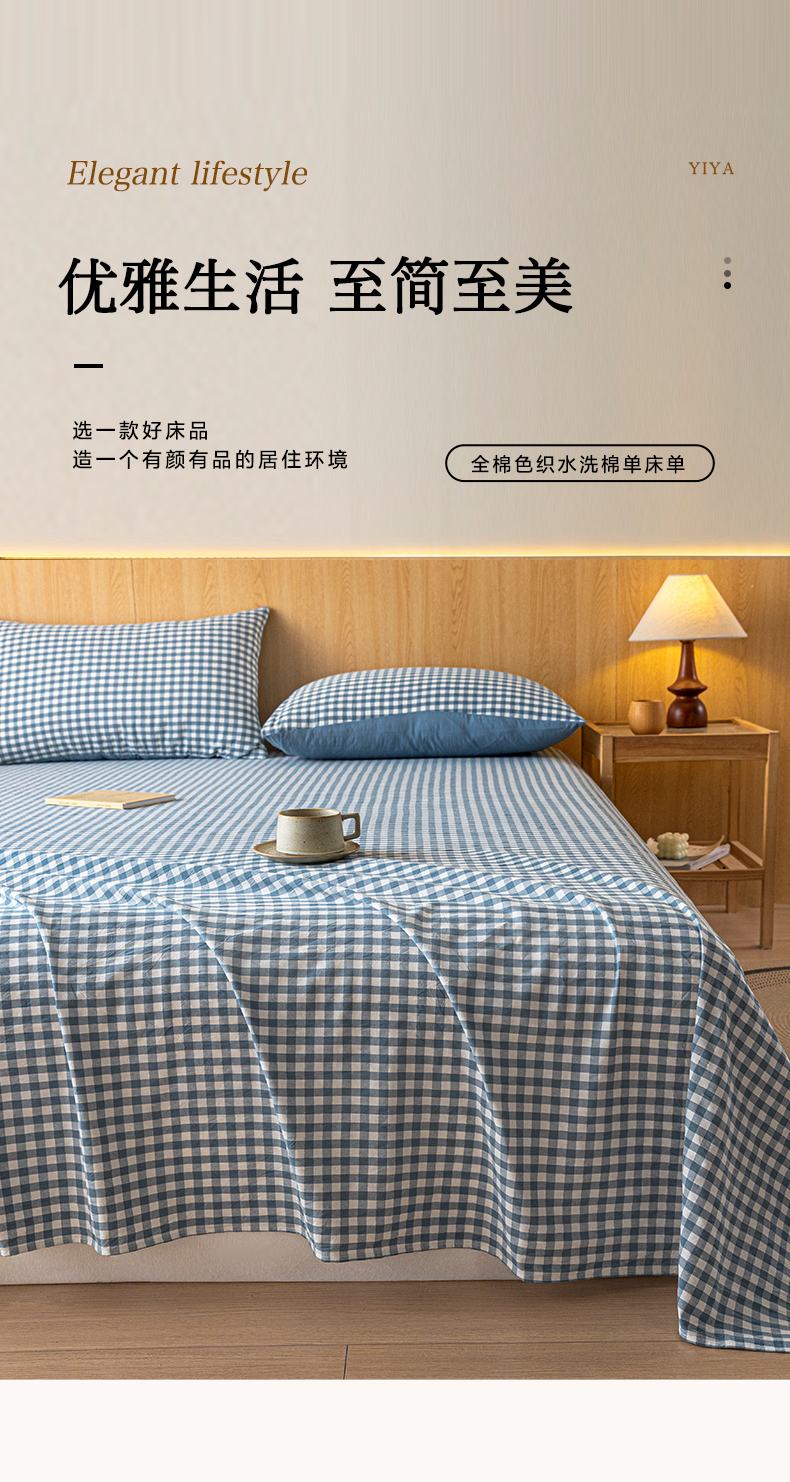 雅居纺家纺 2024新款全棉色织水洗棉单床单 床单-蓝小格