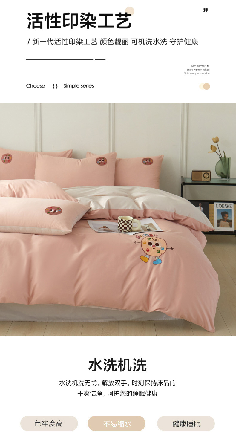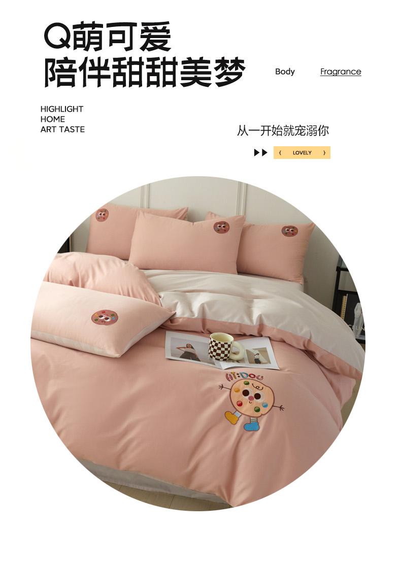 当前位置: 91家纺网 > 商品网购 > 床品套件 > 四件套 > 全棉活性四件套 > 万盛家纺 2025新款全棉喷气13372刺绣卡通四件套 cookies饼千仔-豆沙粉