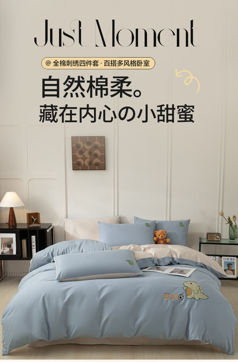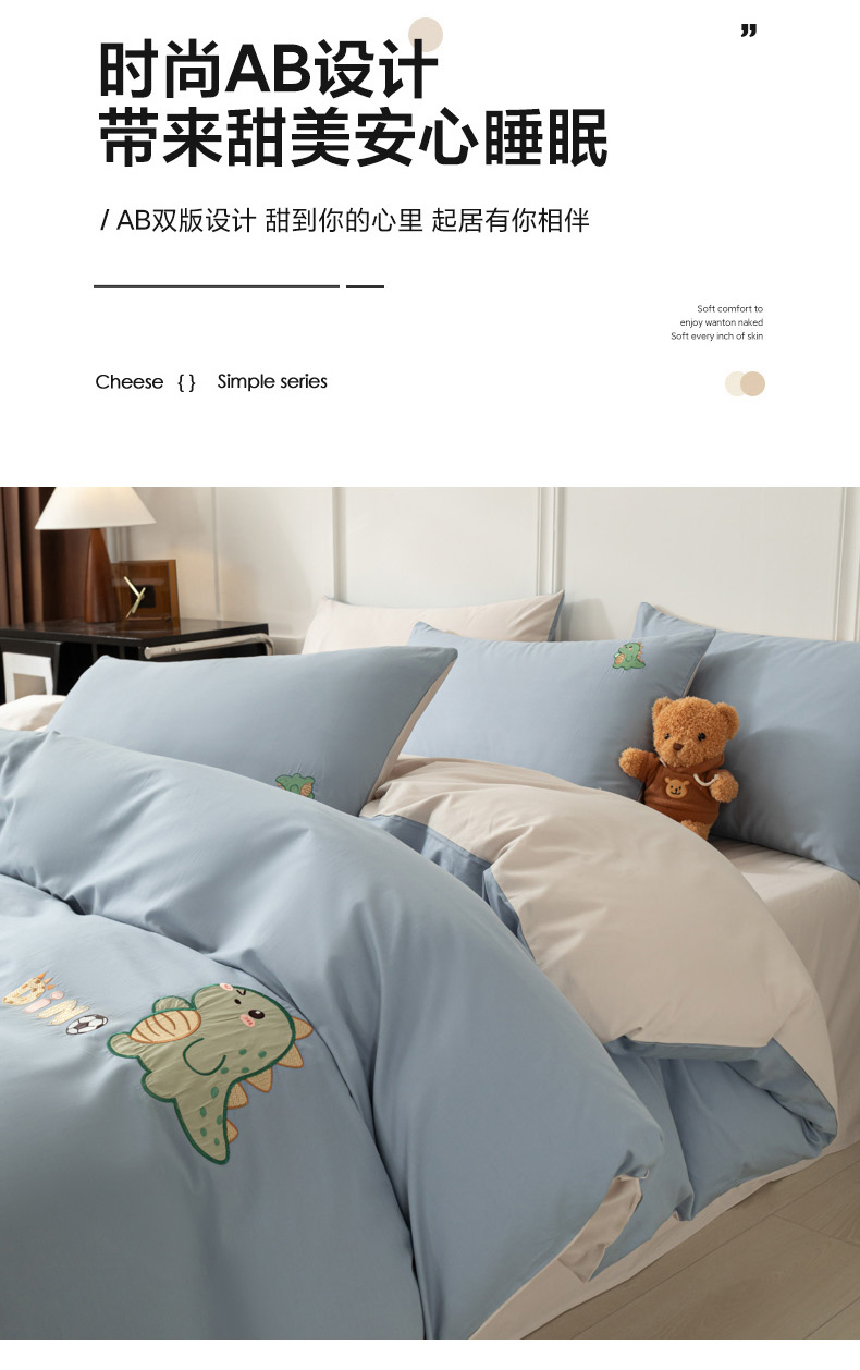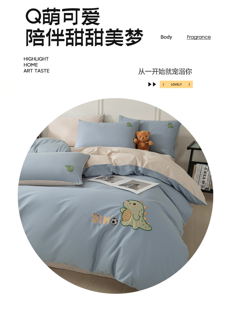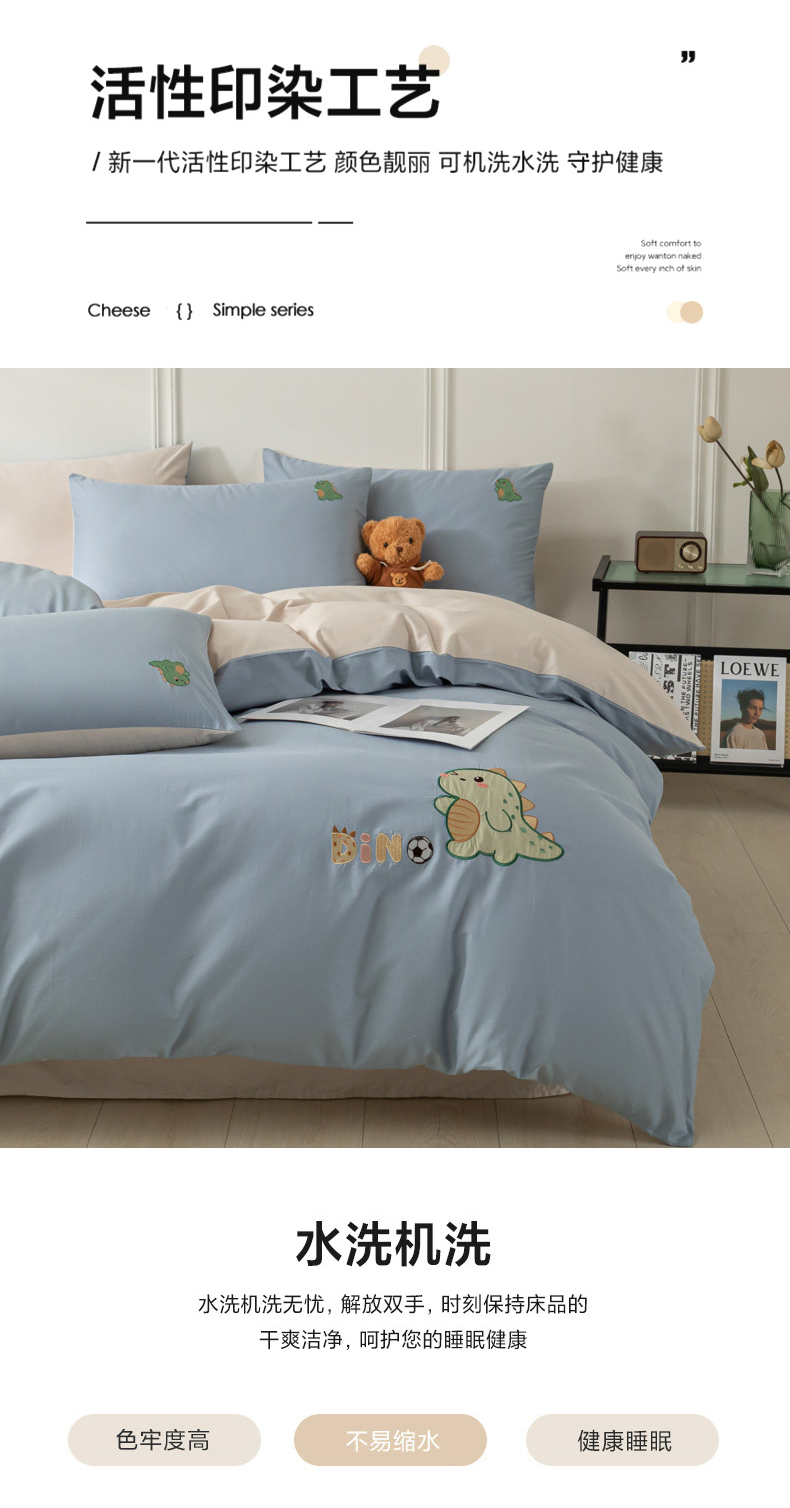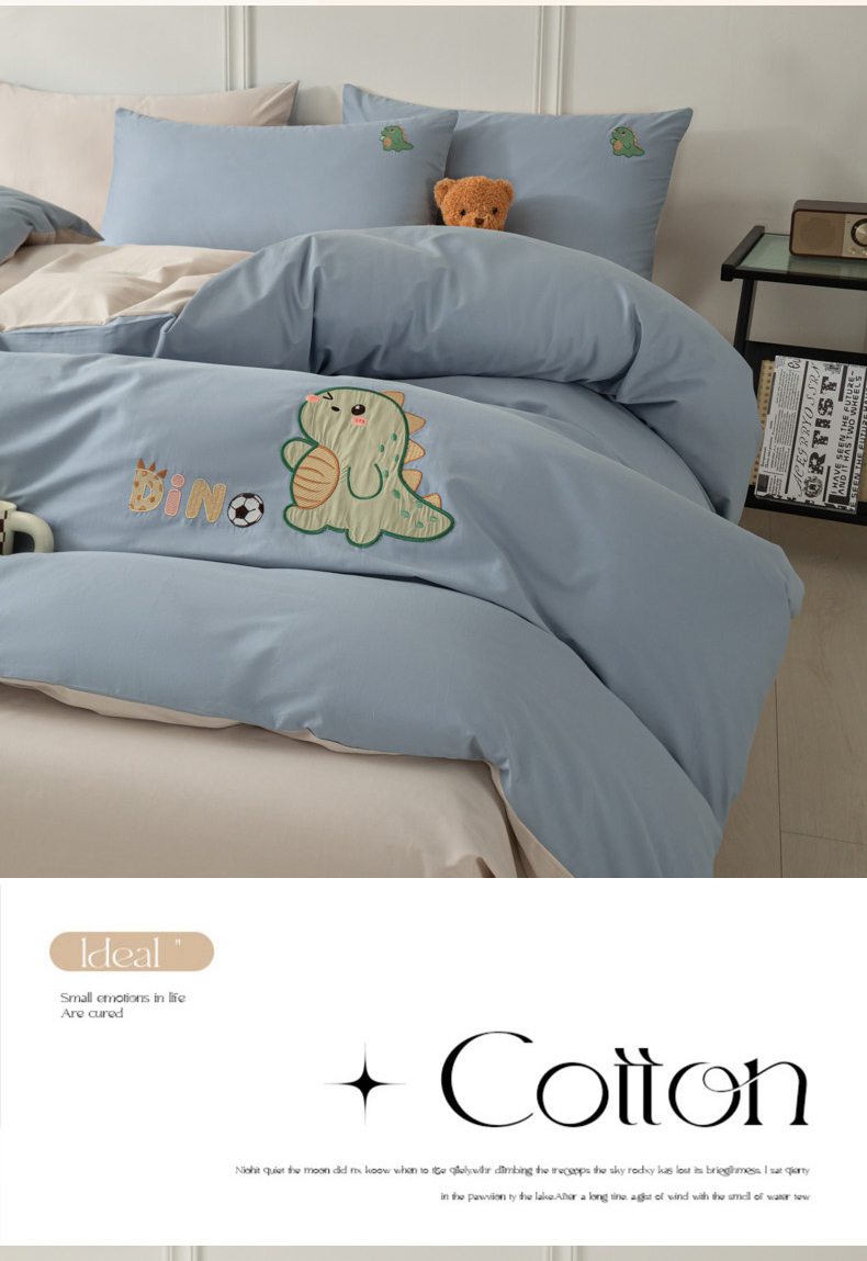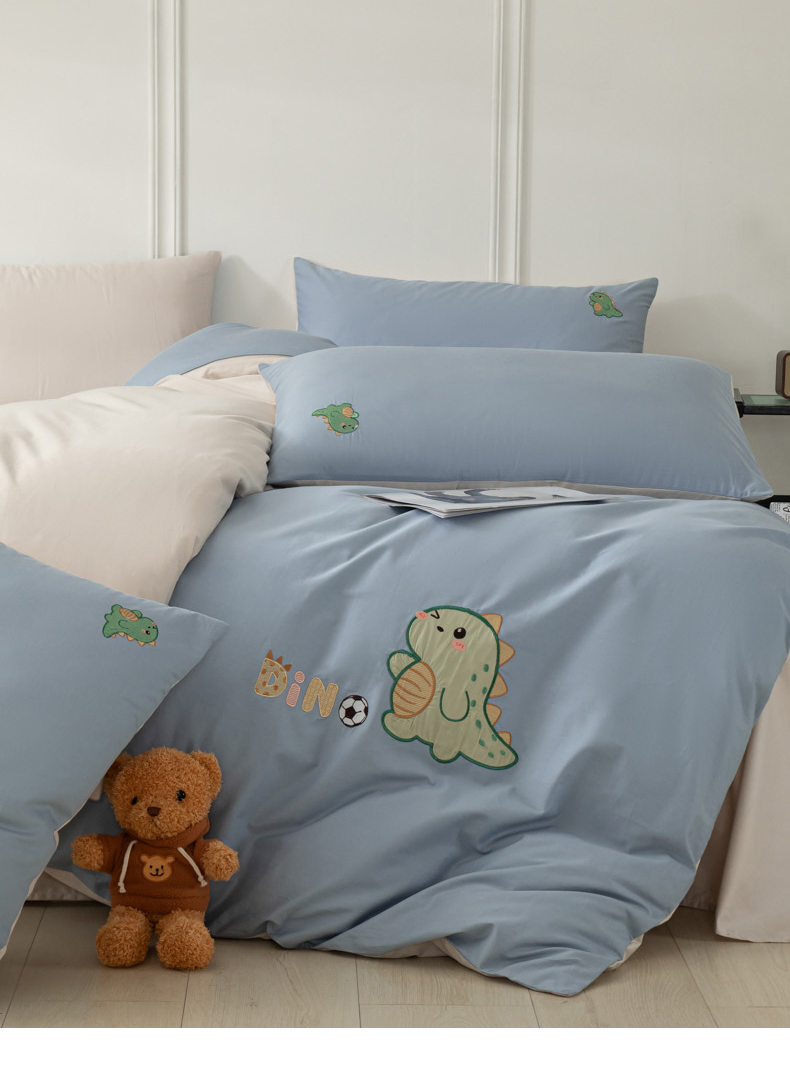 当前位置: 91家纺网 > 商品网购 > 床品套件 > 四件套 > 全棉活性四件套 > 万盛家纺 2025新款全棉喷气13372刺绣卡通四件套 football恐龙-深蓝咖
