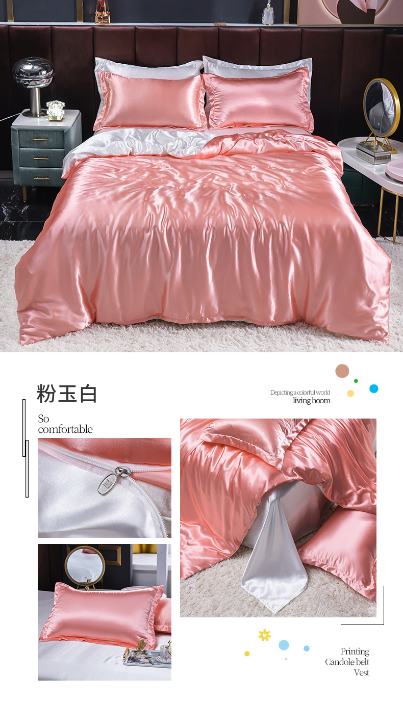 当前位置: 91家纺网 > 商品网购 > 床品套件 > 四件套 > 化纤活性四件套 > 莱越家纺 纯色网红款双面冰丝四件套夏季凉感丝真丝被套床单三件套床上用品 粉玉白