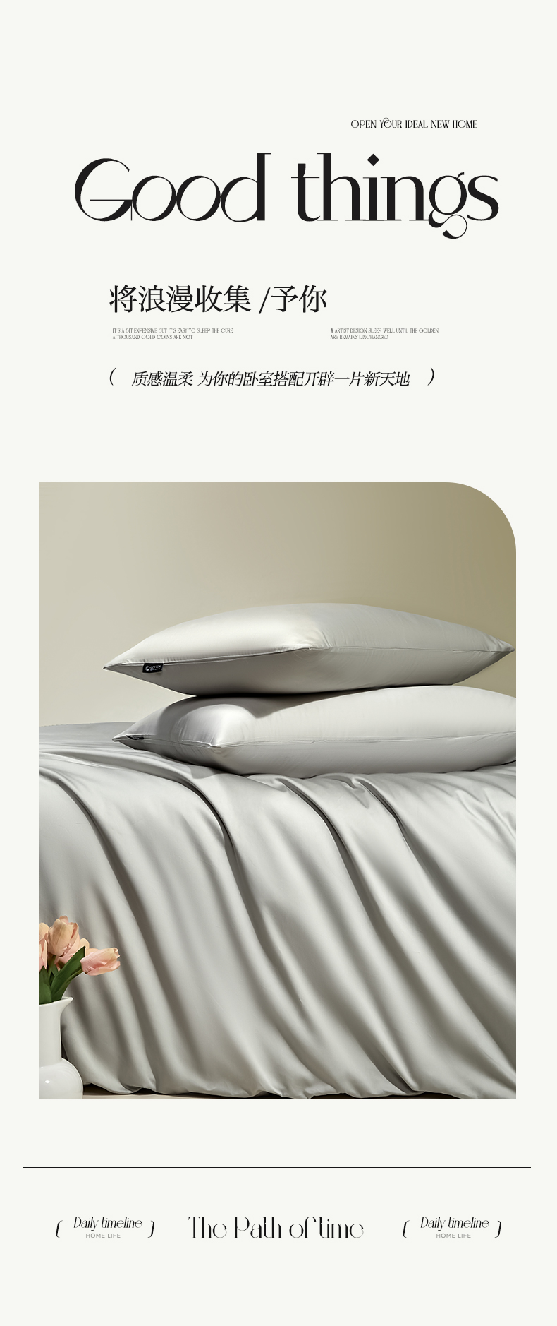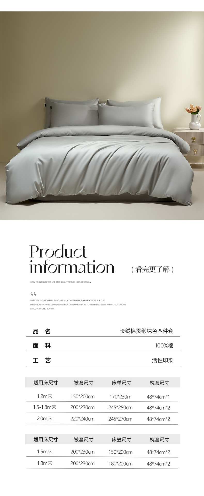 商品名称:安莱生活 2024新款100s全棉贡缎四件套 高级灰