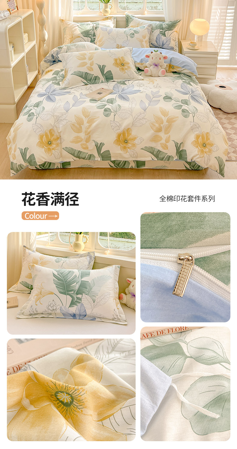 绵庭家纺 2024新款全棉印花套件系列四件套 花香满径