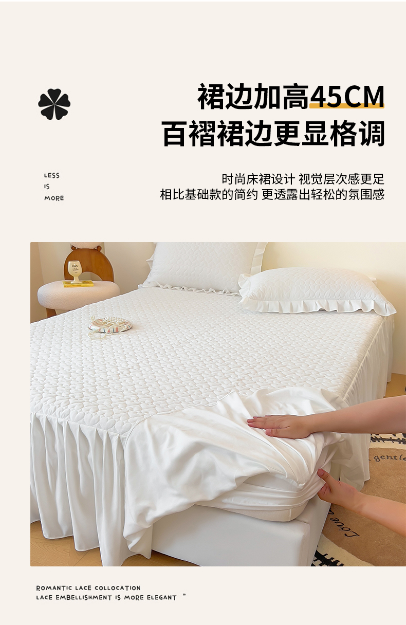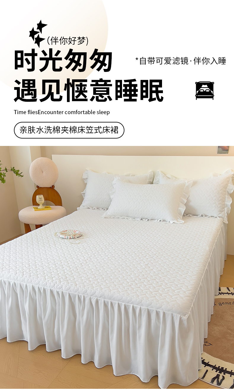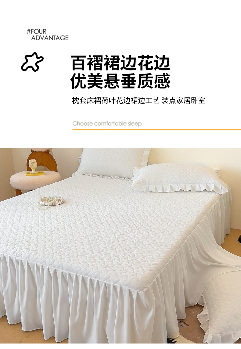 商品名称:屹成家纺 2024新款水洗棉床笠款床裙花语系列 本白