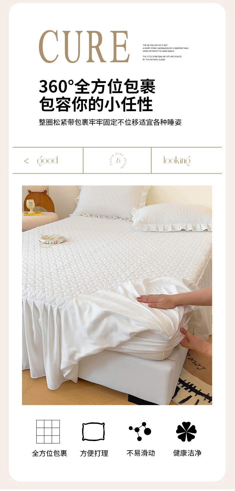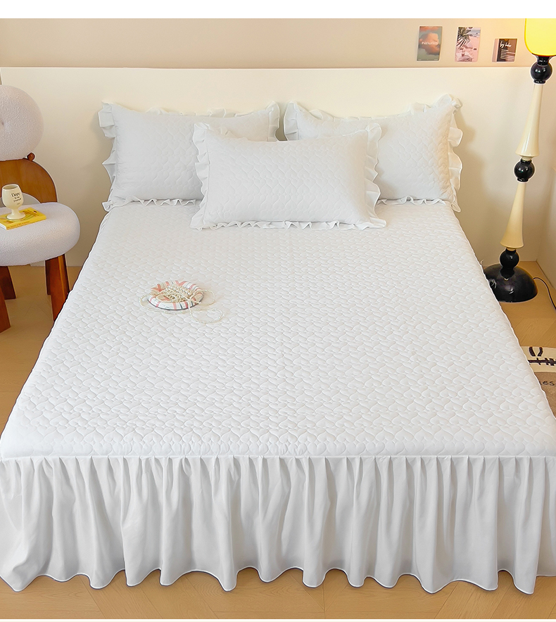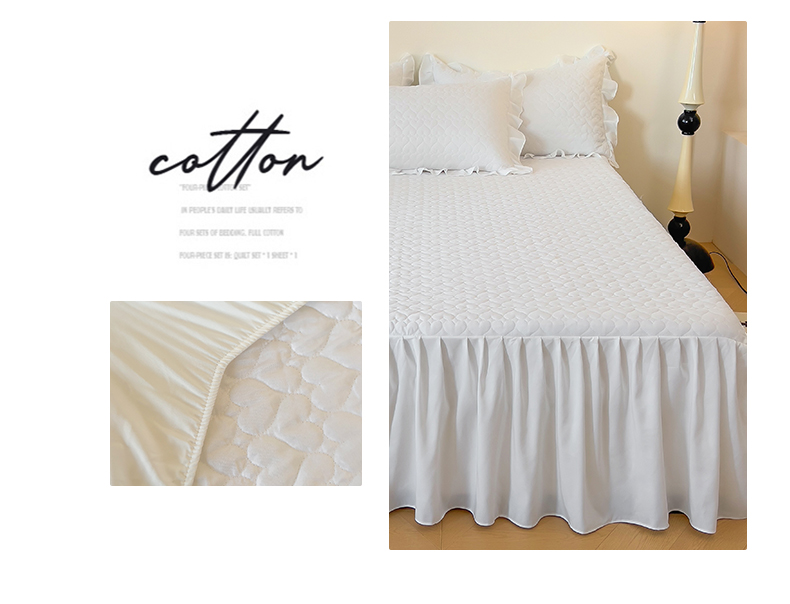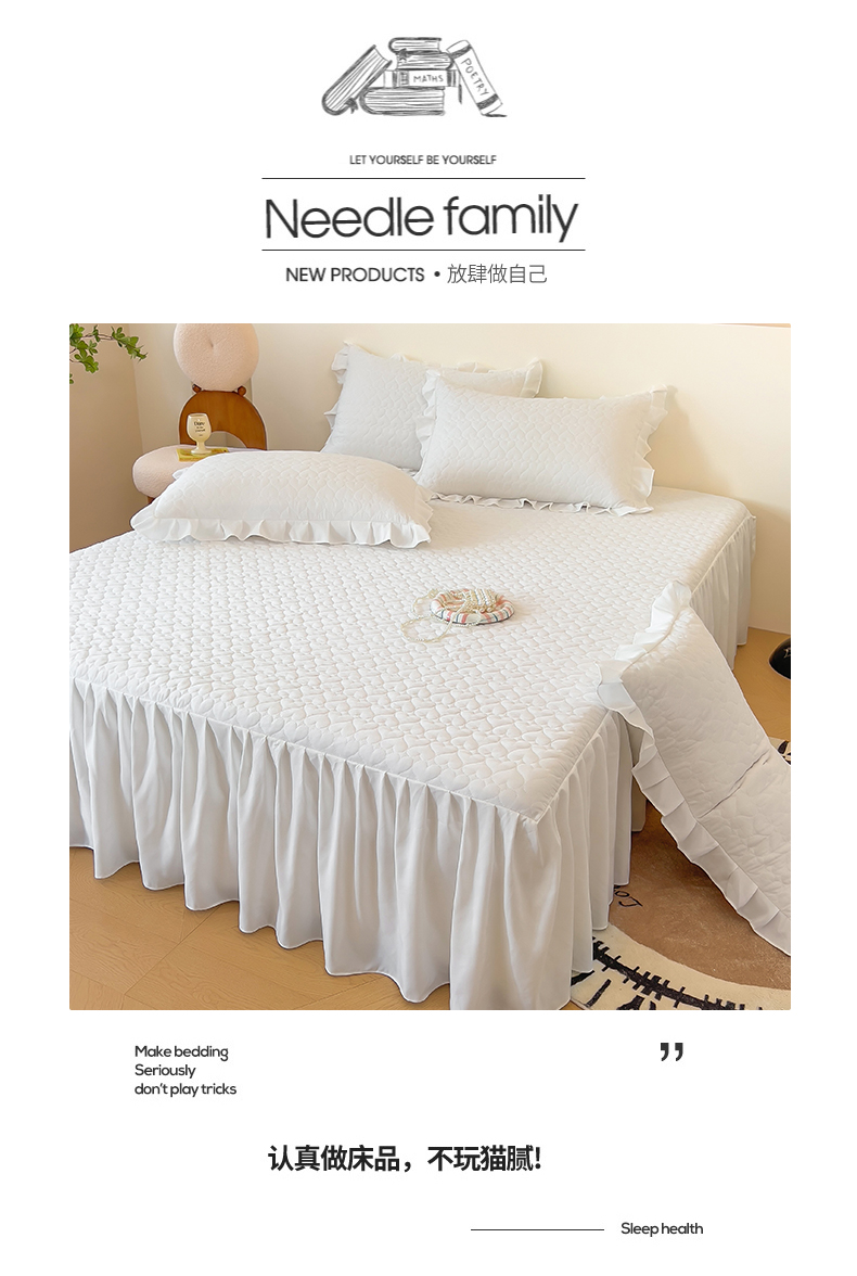 屹成家纺 2024新款水洗棉床笠款床裙花语系列 本白