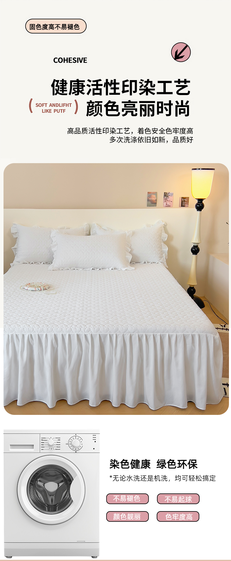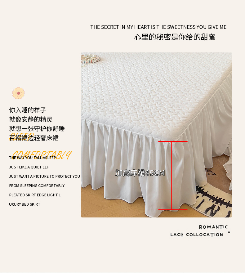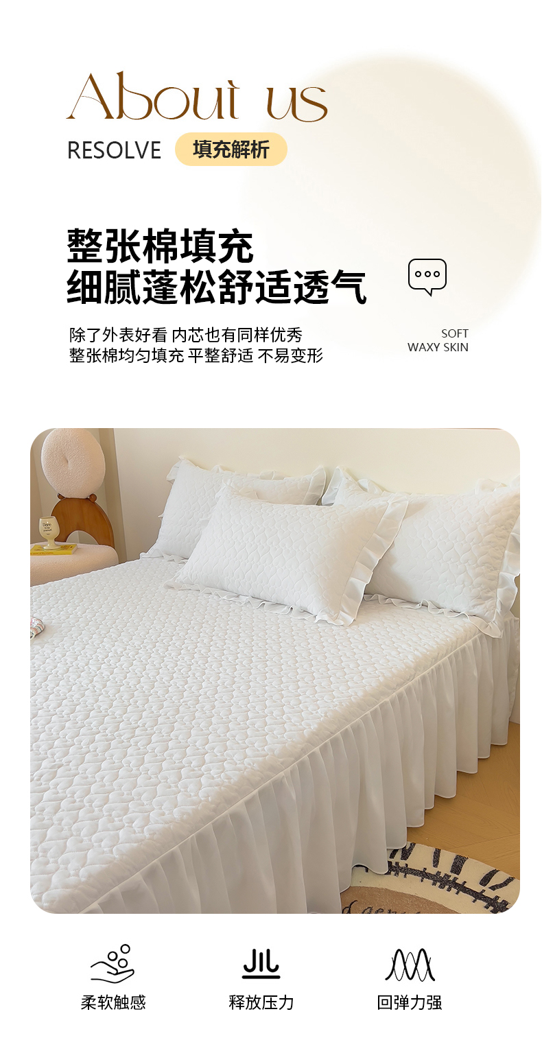 (总)屹成家纺2025新款水晶绒夹棉绗缝蕾丝床裙三件套(塞纳河畔)床裙单件起售价不低于105元,大红,豆沙,翡翠绿,粉玉,橄榄绿,蔚蓝,银灰