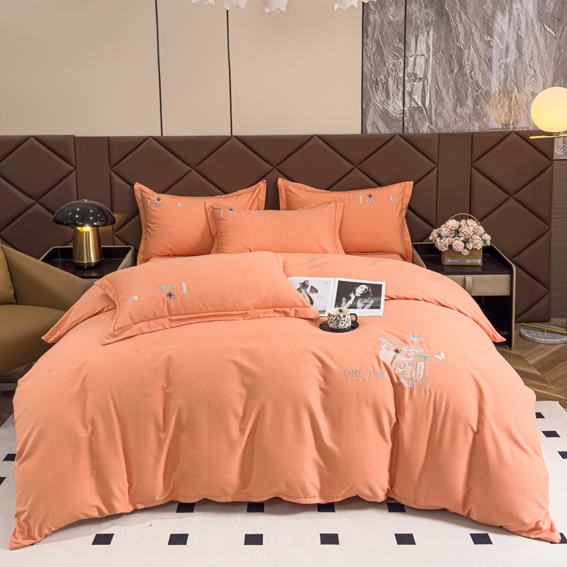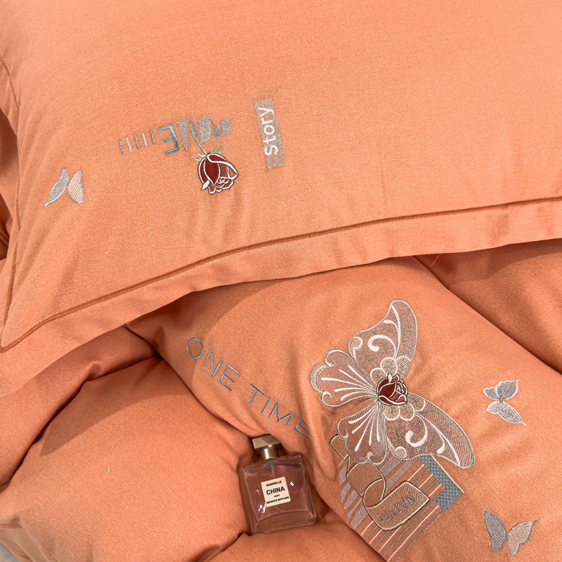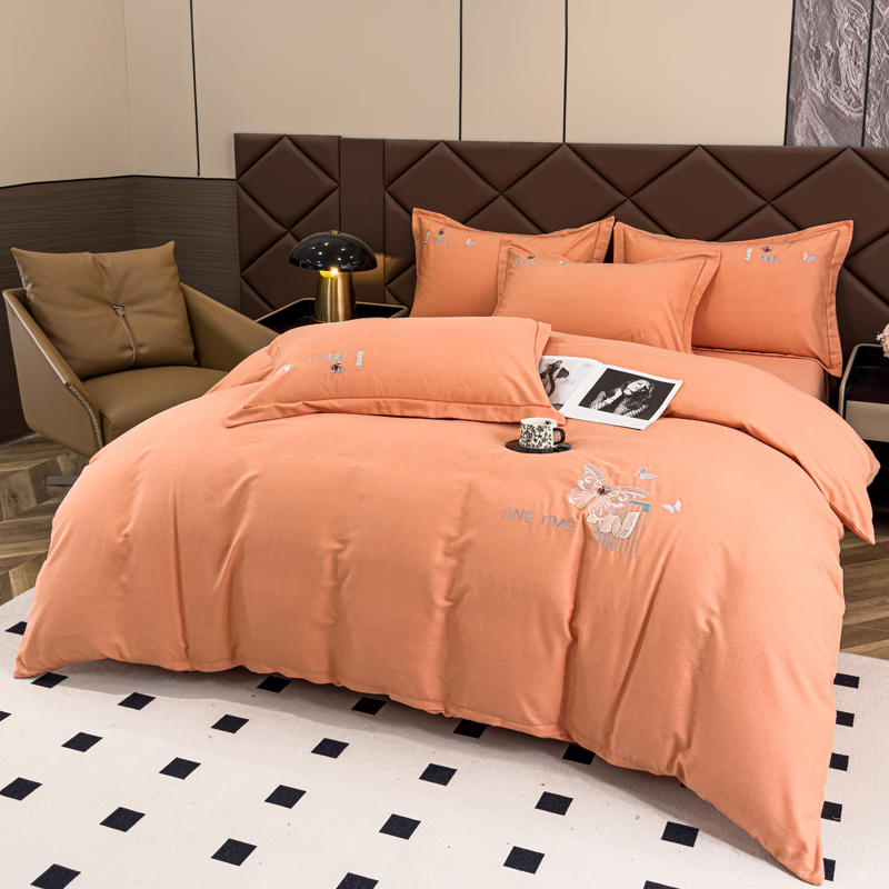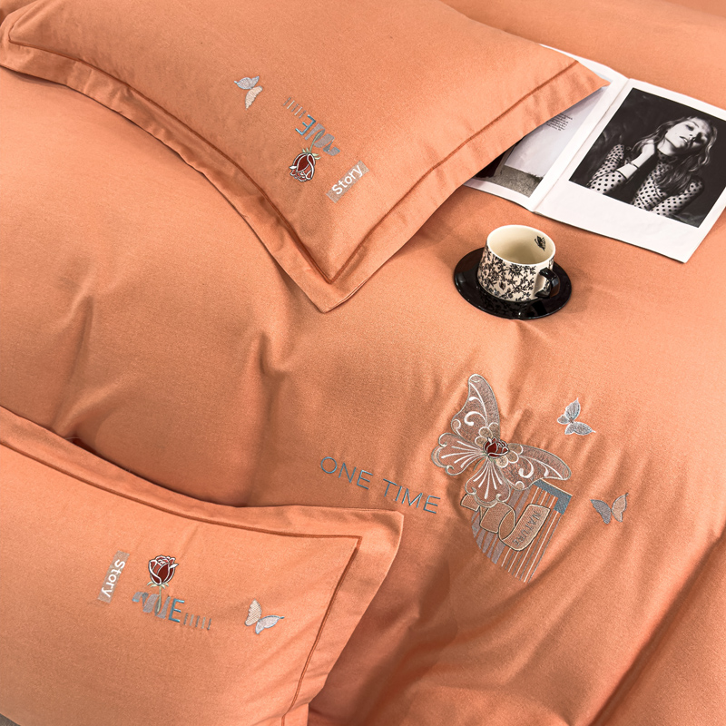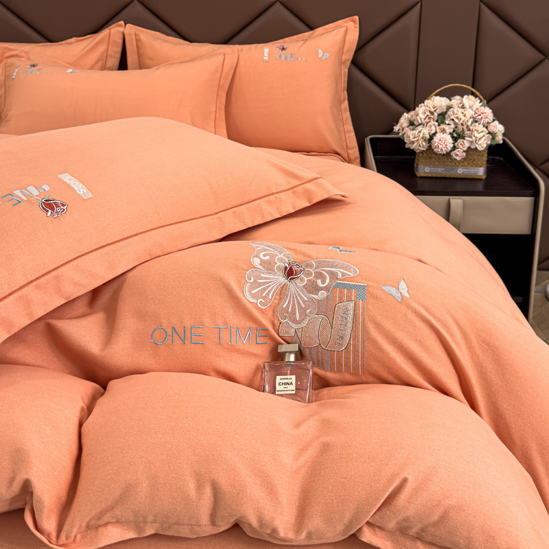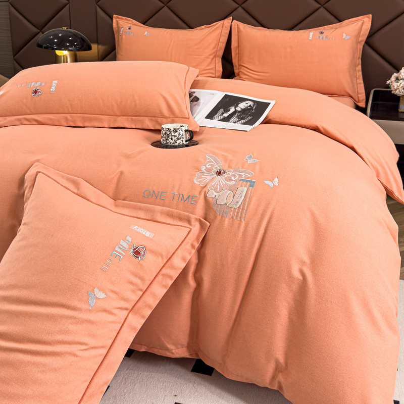 当前位置: 91家纺网 > 商品网购 > 床品套件 > 四件套 > 普通磨毛四件套 > U品汇 2024新品生态加厚长绒棉纯棉绣花全棉磨毛刺绣四件套直播 蝶恋花-活力桔