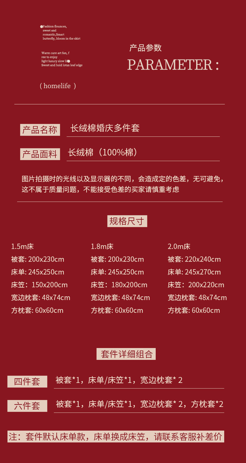 1.8m床笠款六件套 | ¥295.00 |