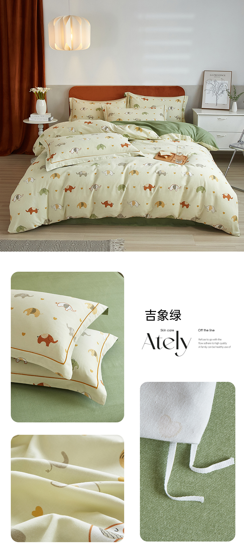 商品名称:2025新款全棉精梳磨毛印花四件套 吉象绿