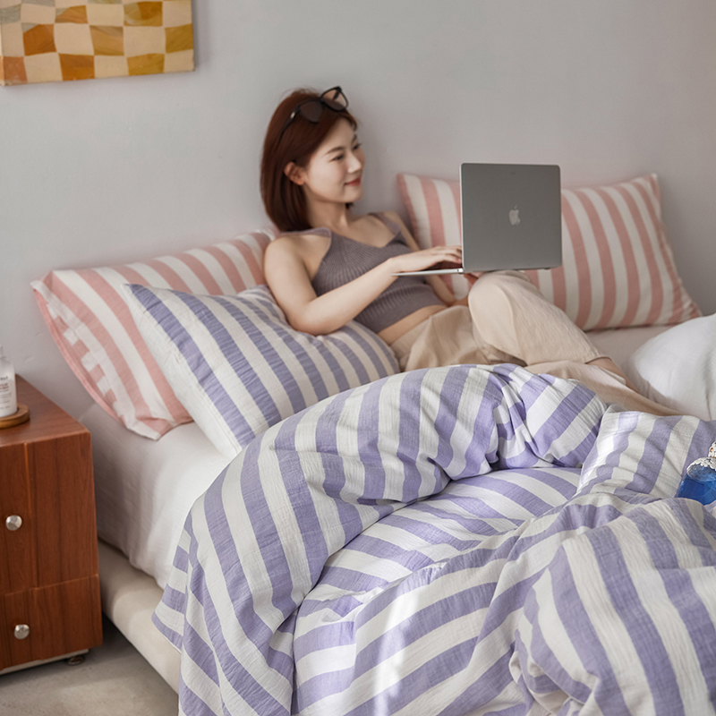 当前位置: 91家纺网 > 商品网购 > 床品套件 > 四件套 > 全棉普通四件套 > 2025新品尚美色织条纹绉纱系列--尚美宽条系列 尚美-紫玉宽条