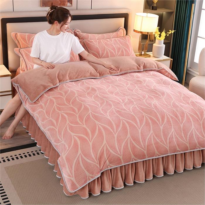 商品名称:绒品壹家家纺 2024新款180g7斤牛奶绒印花四件套 素色主义-粉