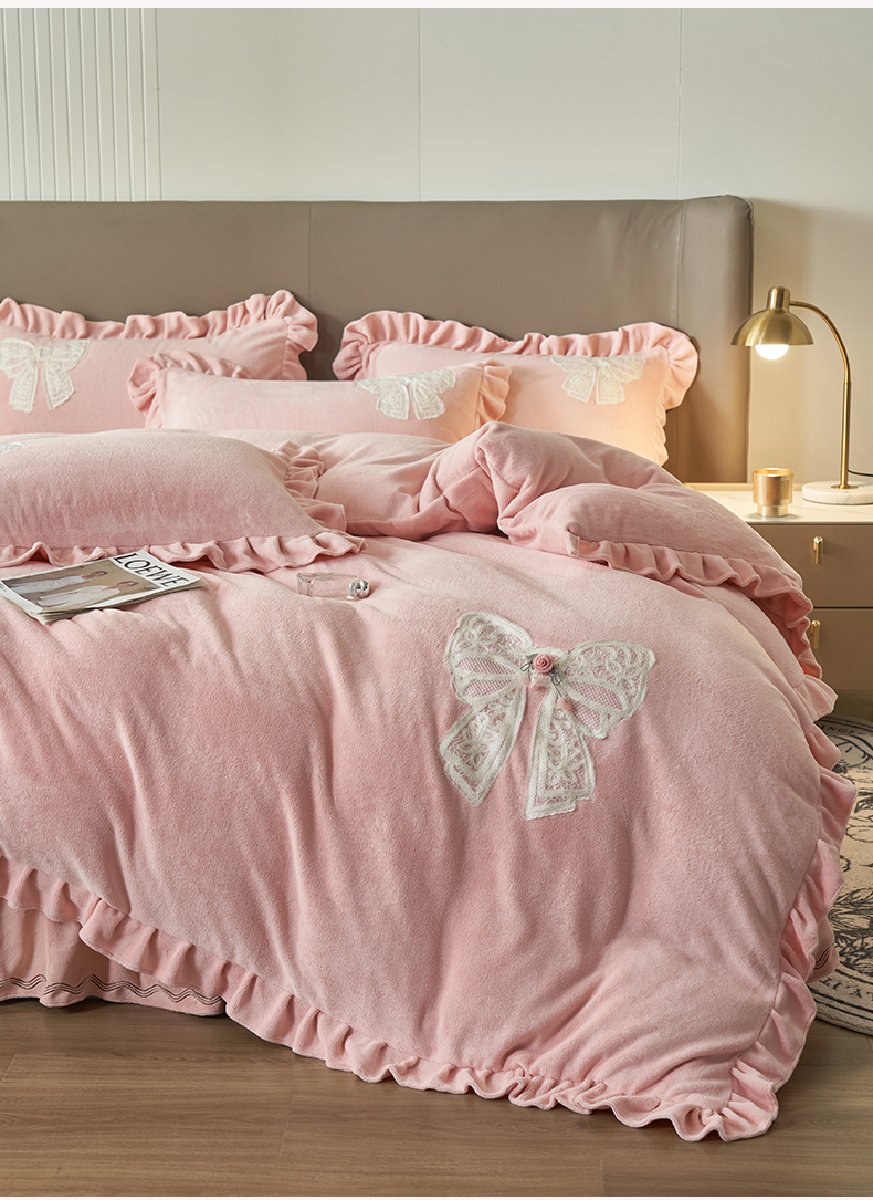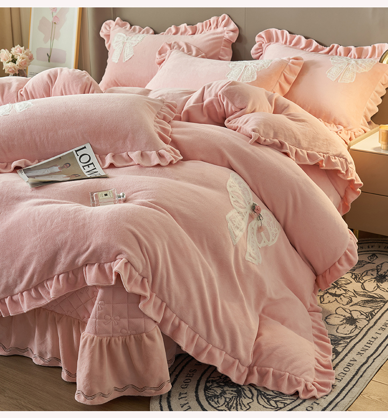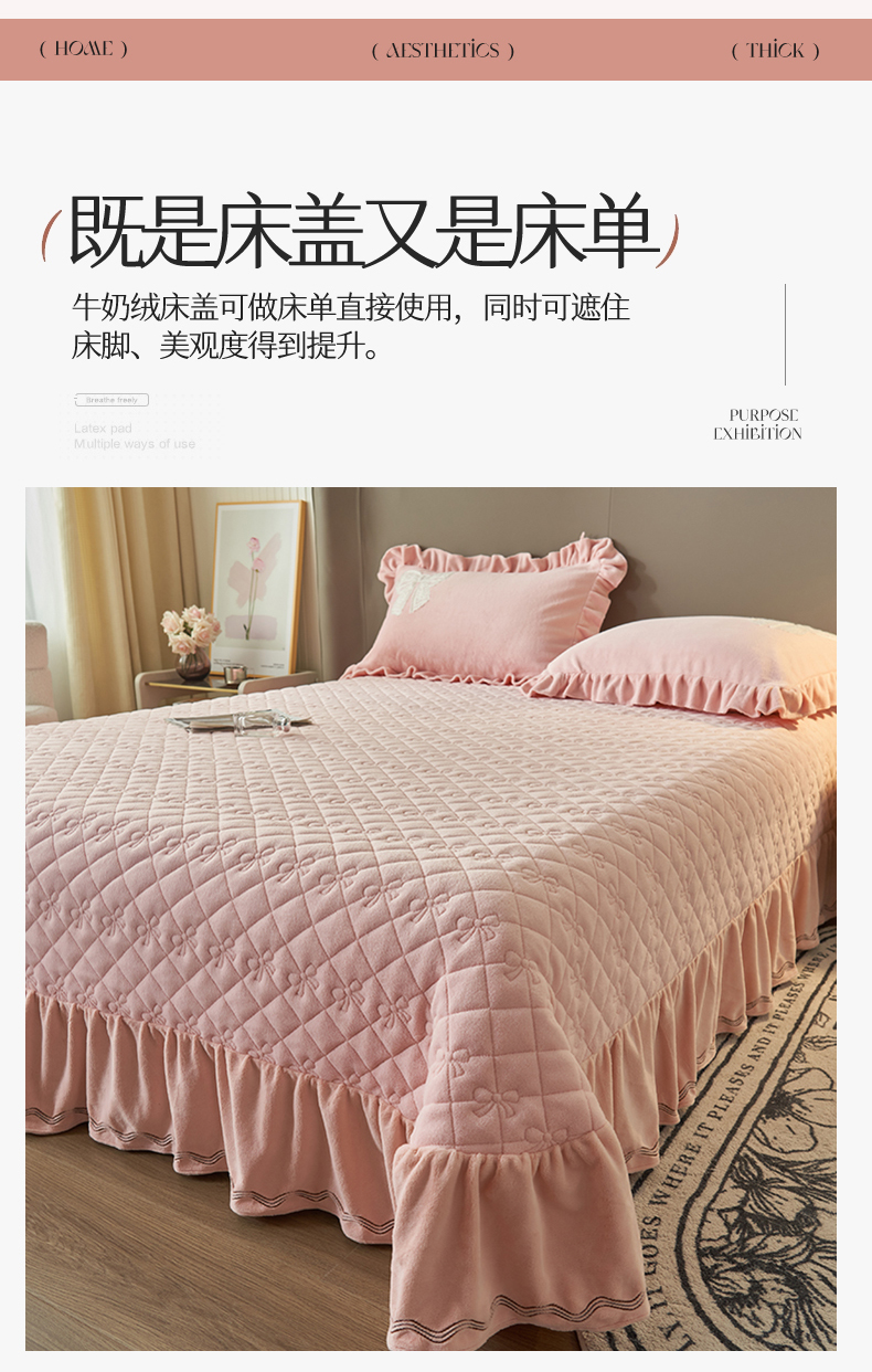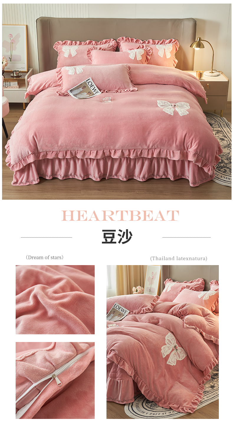 (总)恒爱家纺 2025新款牛奶绒贴布绣夹棉床裙四件套,豆沙红,浪漫紫,天空蓝,温馨粉,象牙白