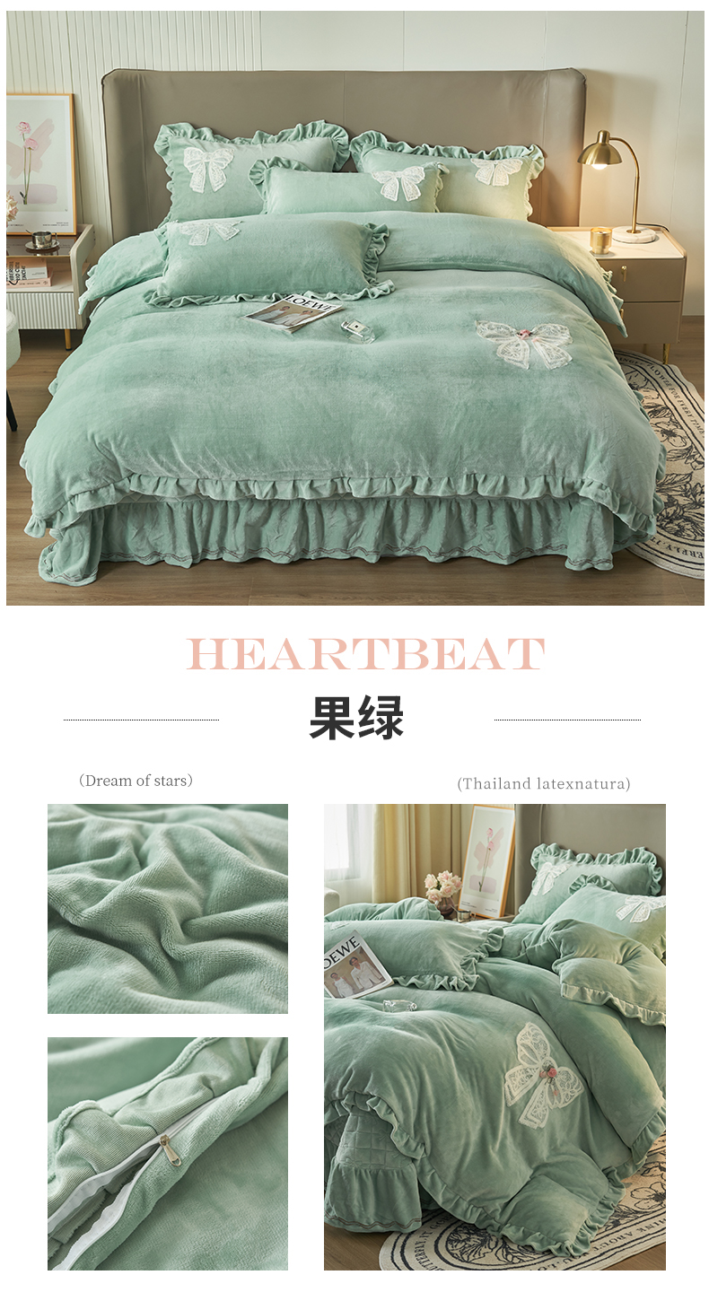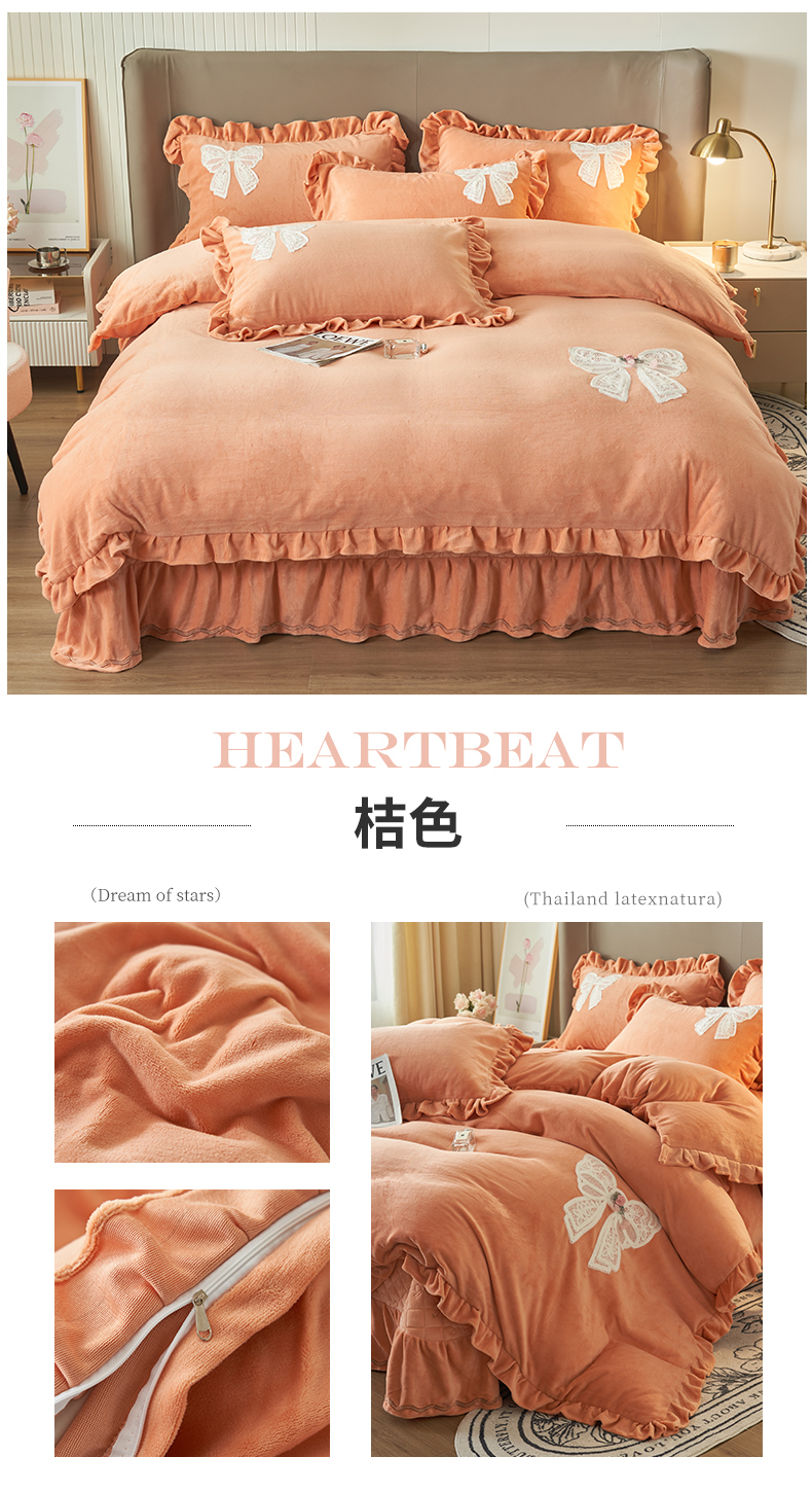(总)恒爱 2022秋冬水晶绒翩翩花舞夹棉床裙四件套,大红色,豆沙红,橄榄绿,公主粉,桔色,咖啡色,孔雀绿,拉菲红,罗兰紫,玫红色,美人玉,米白色,米驼色,抹茶绿,浅灰色,紫色