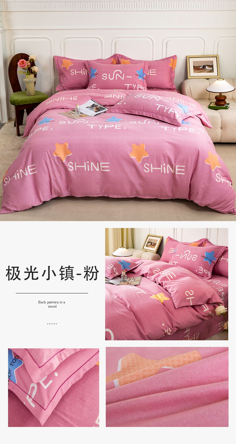 商品名称:威布斯家居 2024新款AA版全棉加厚磨毛四件套 极光小镇-粉