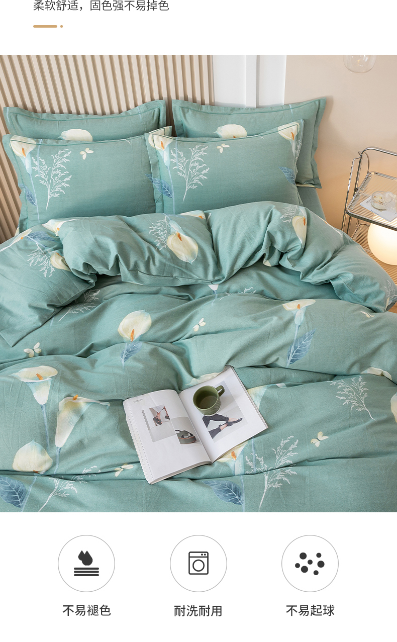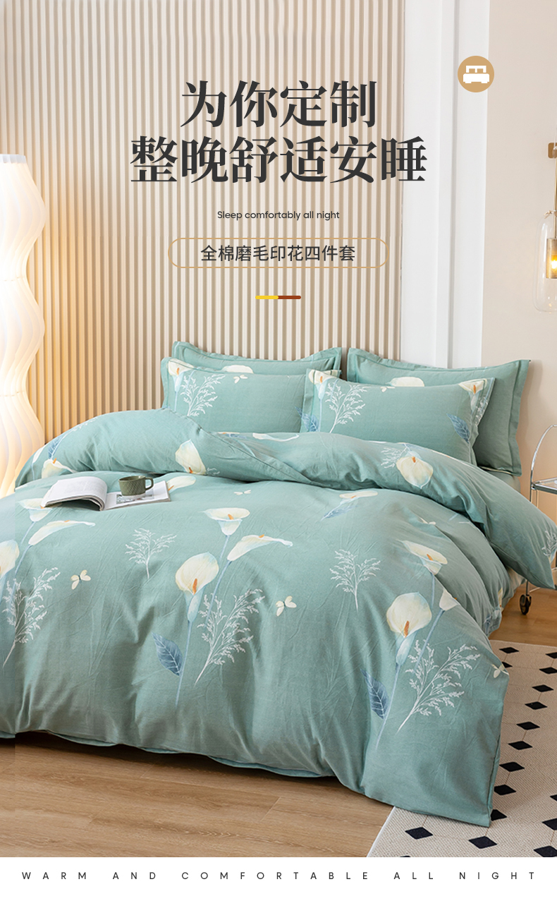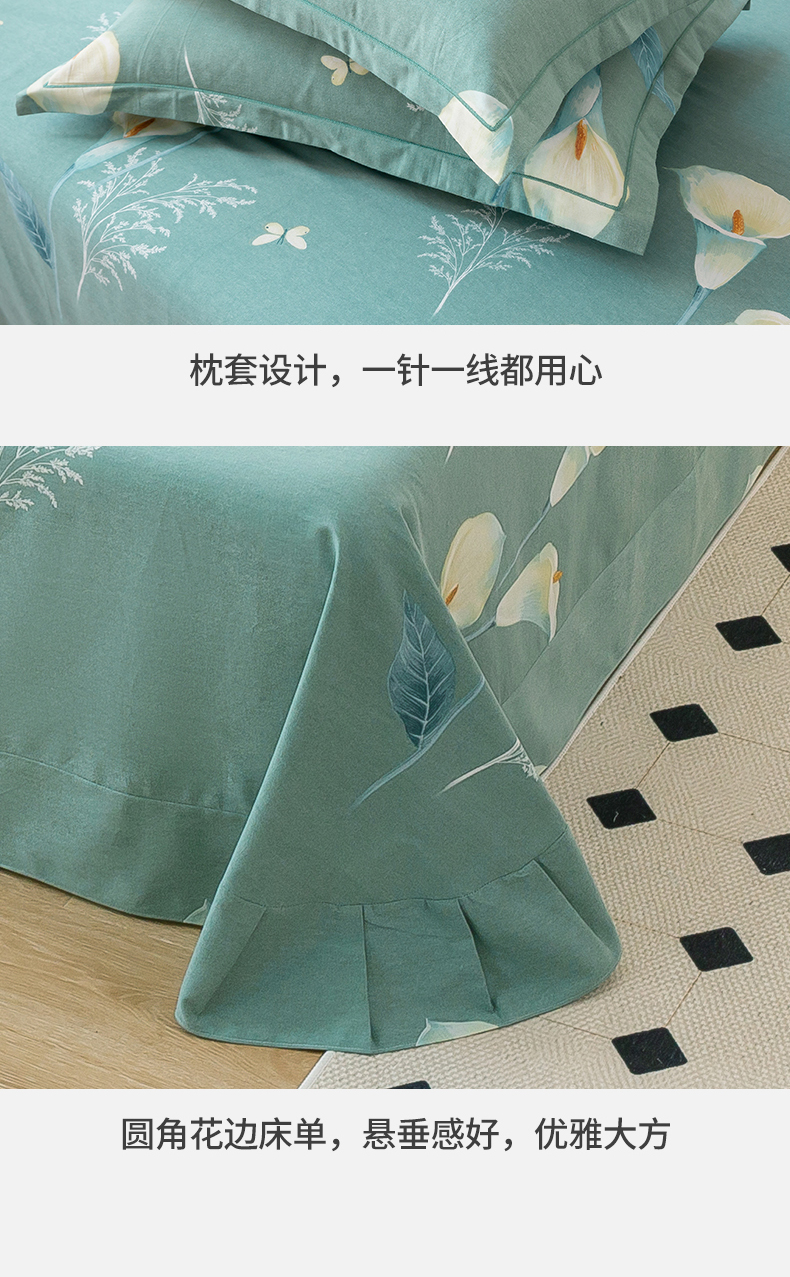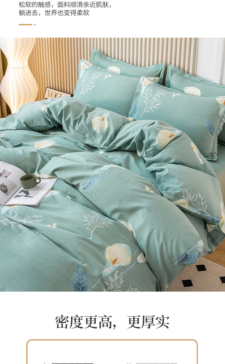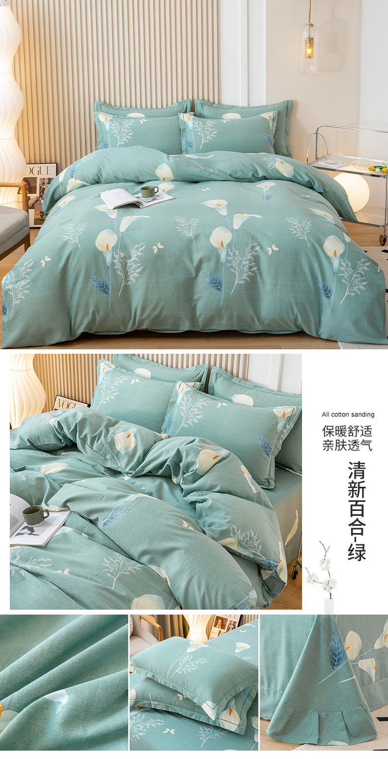 商品名称:威布斯家居 2024新款AA版全棉加厚磨毛四件套 清新百合-绿