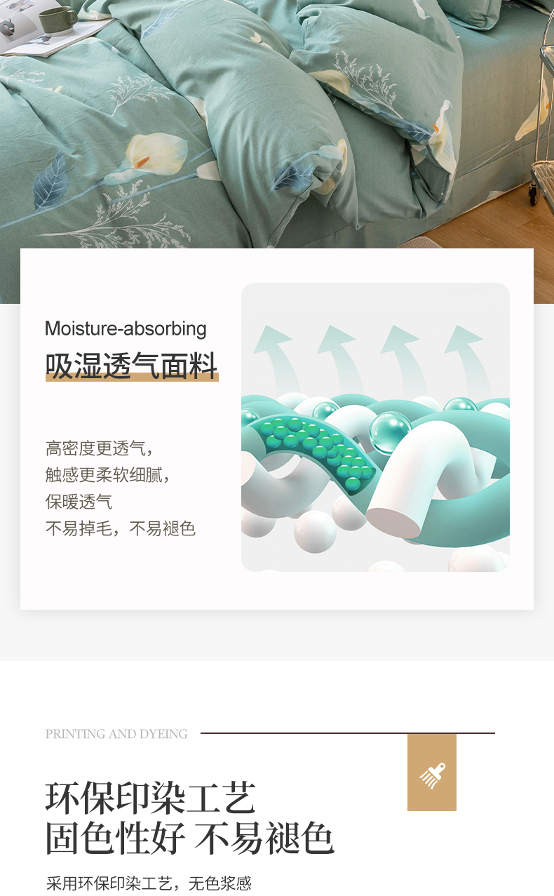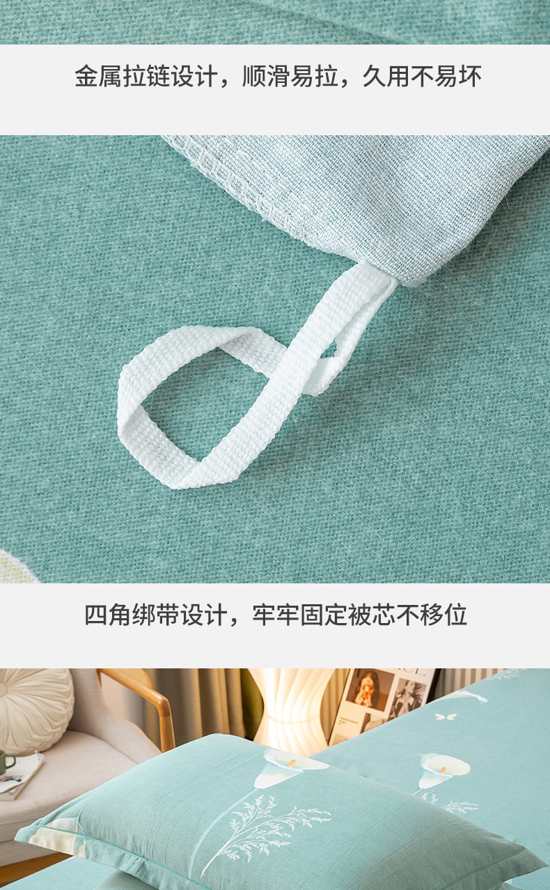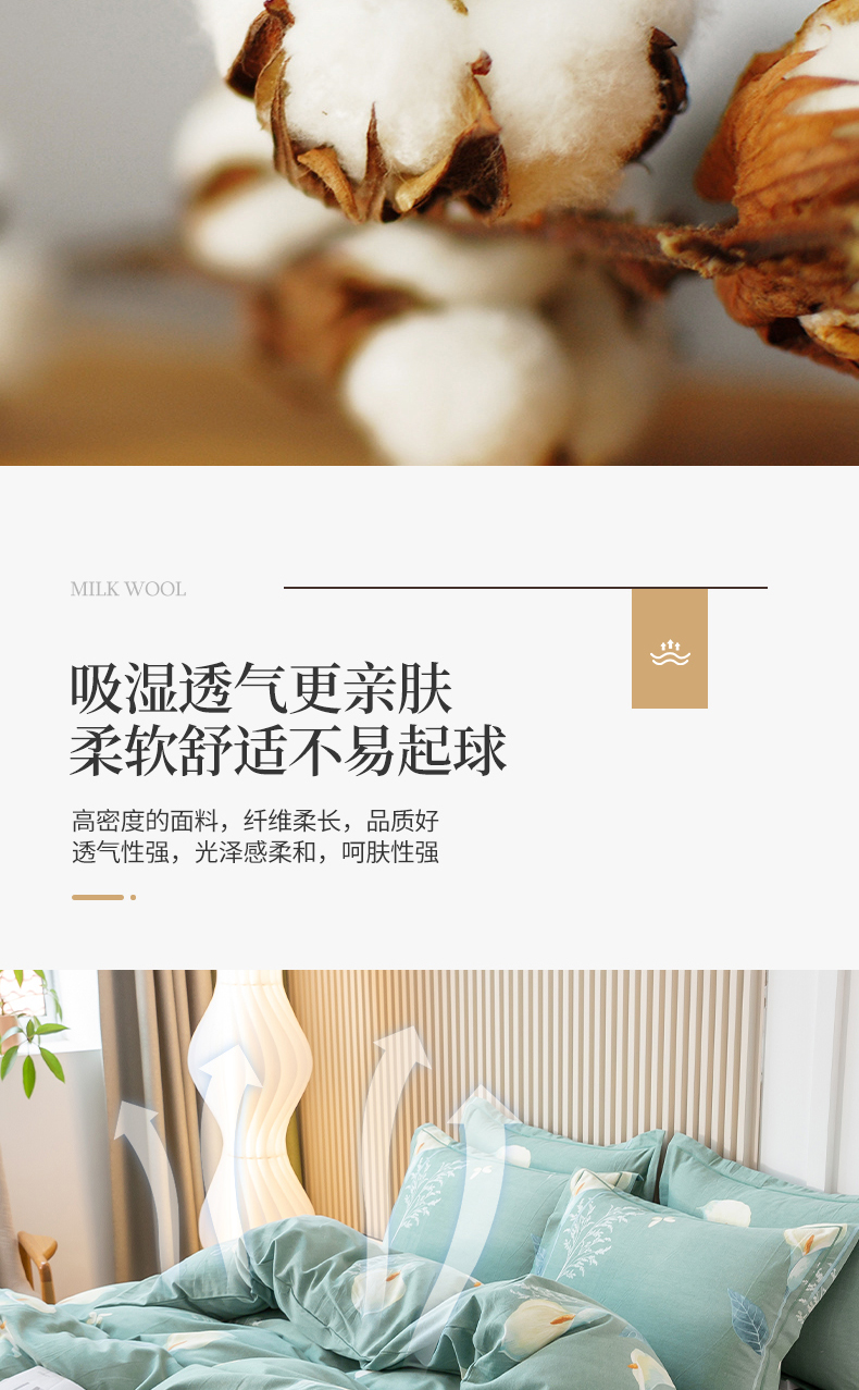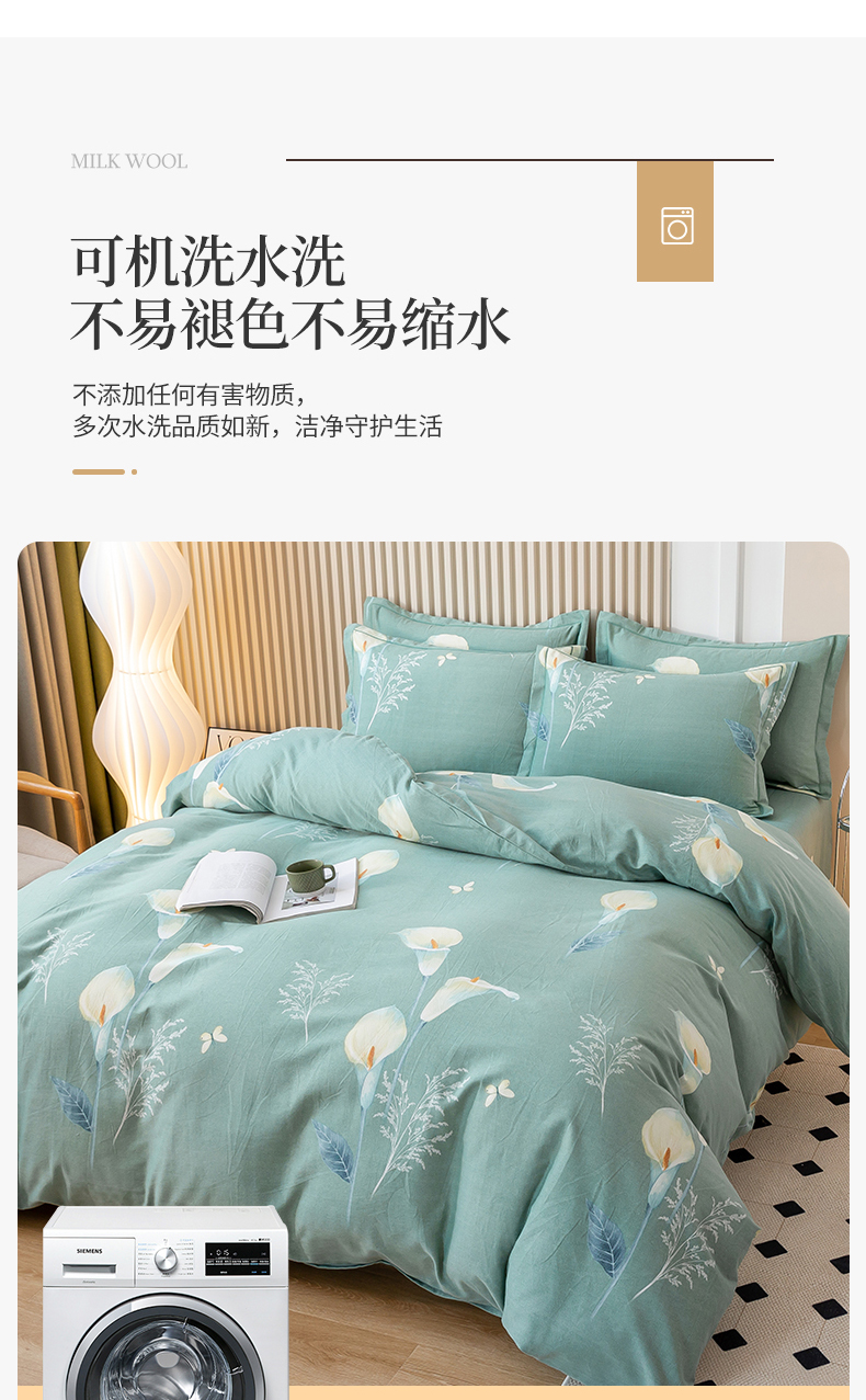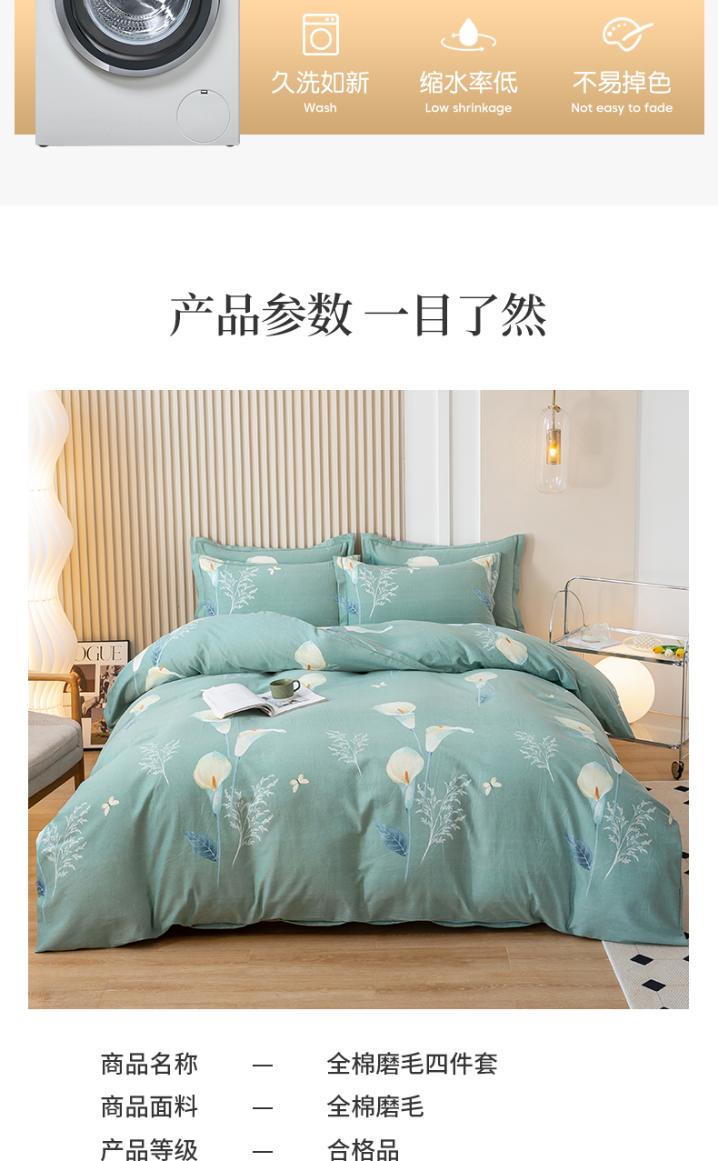 商品名称:威布斯家居 2024新款AA版全棉加厚磨毛四件套 清新百合-绿