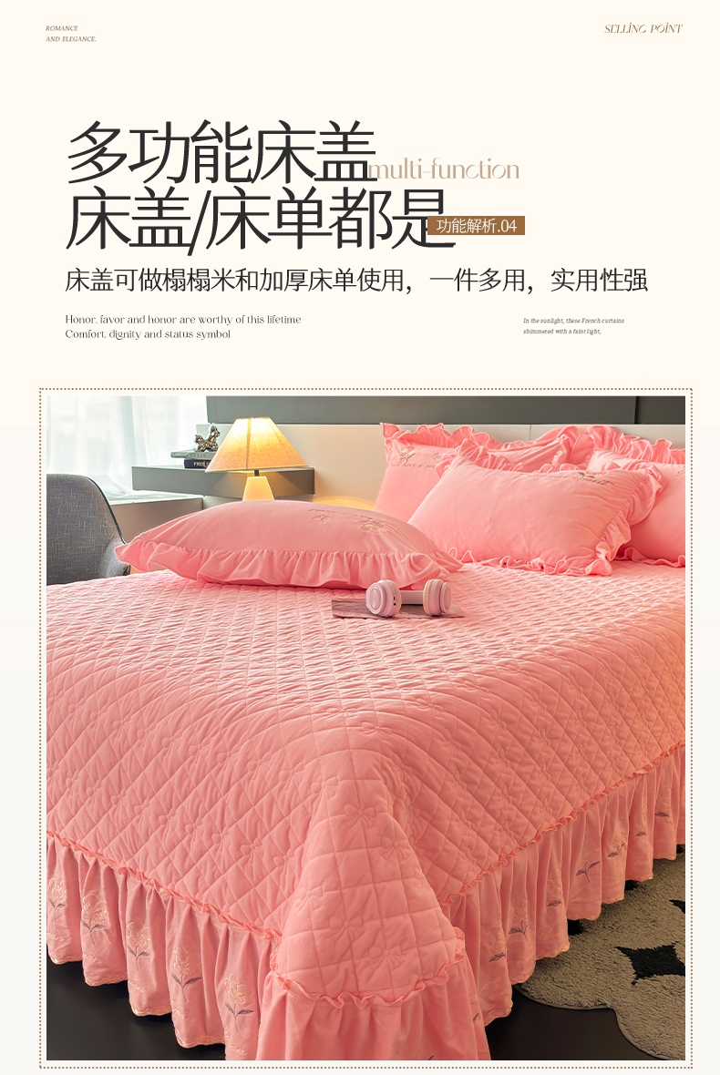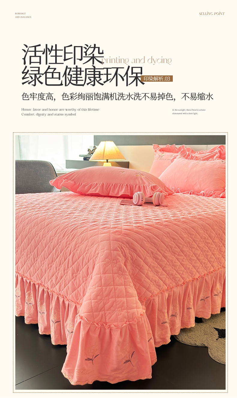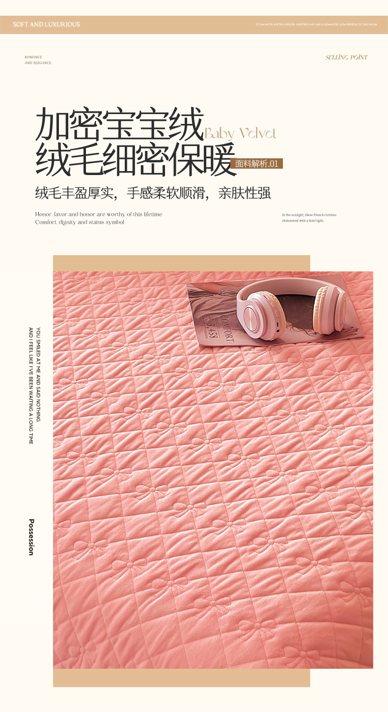 • 91家纺网 家纺一手货源 找家纺 2024新款A类依恋宝宝绒韩版床盖 香妃粉