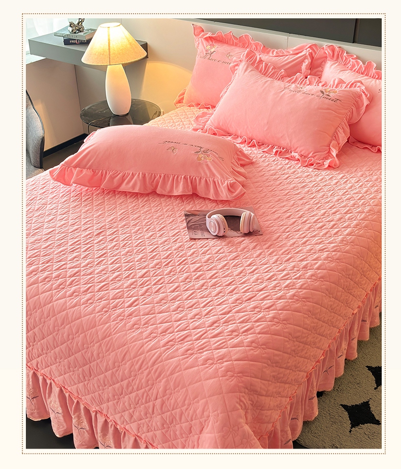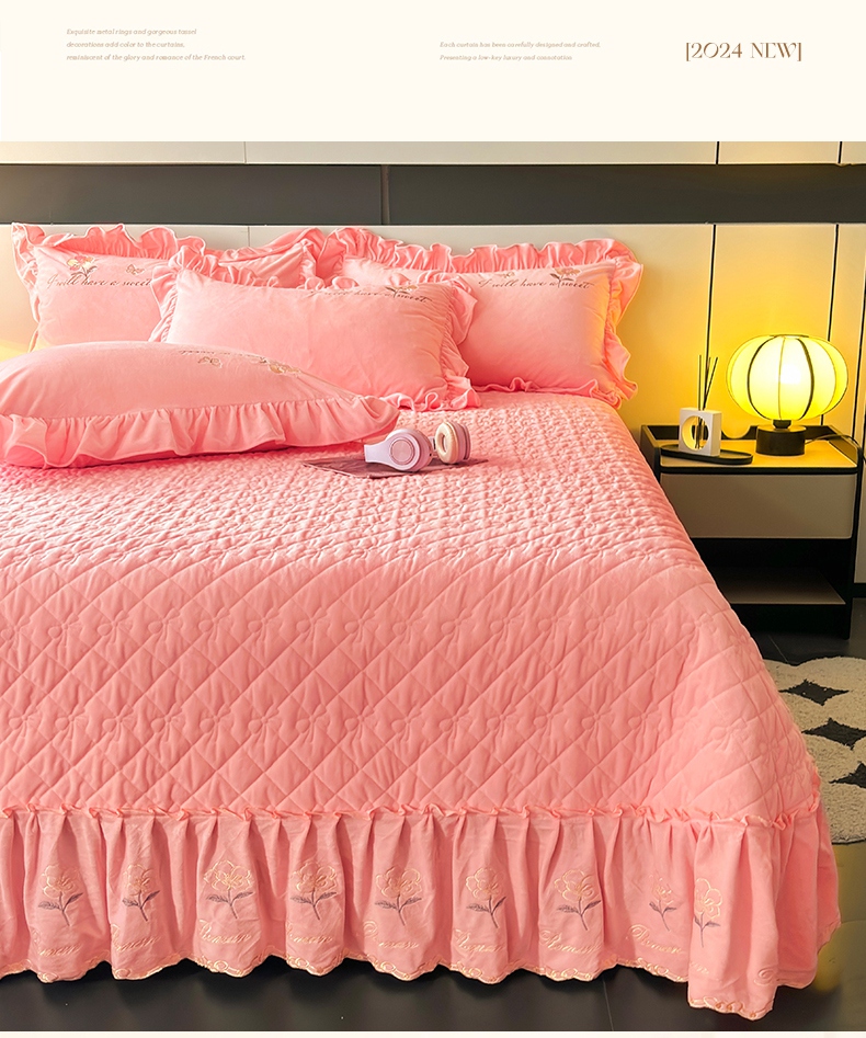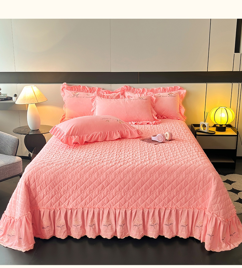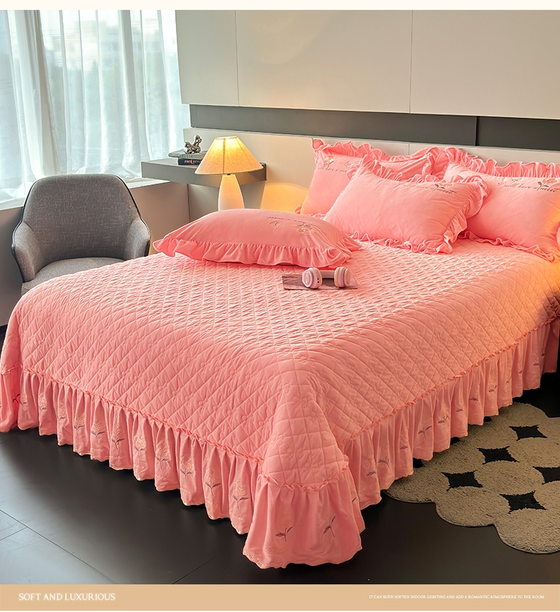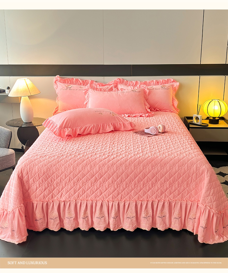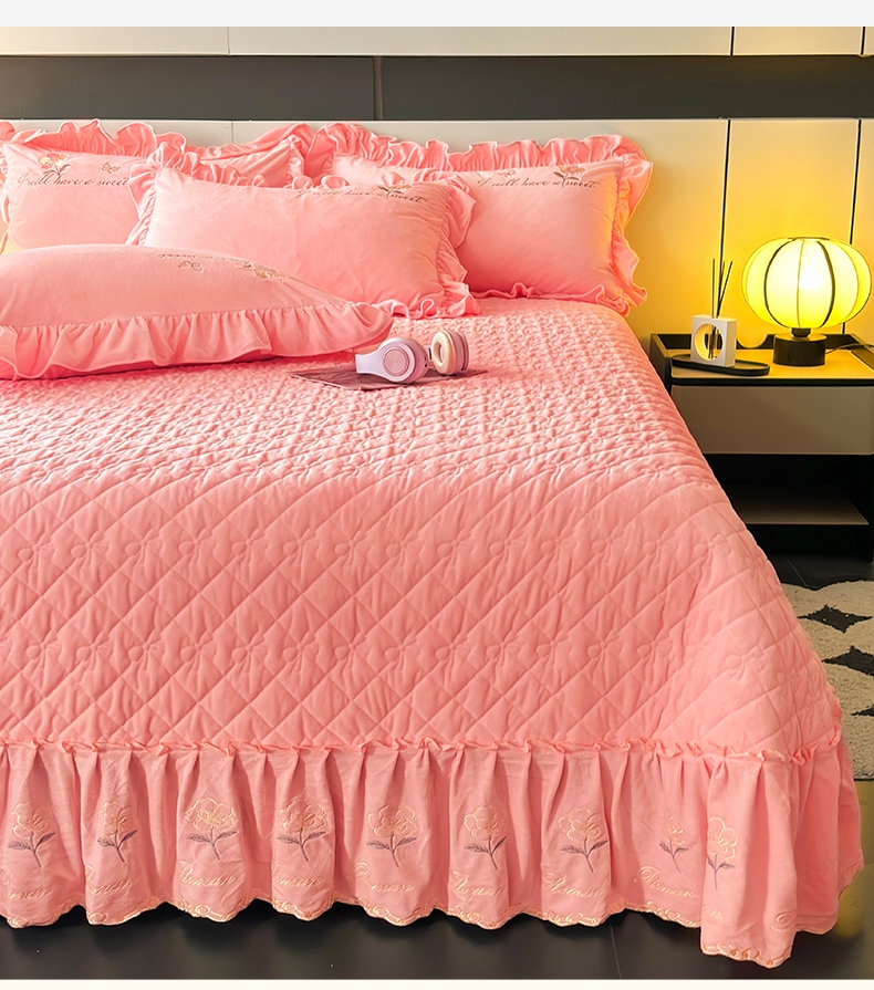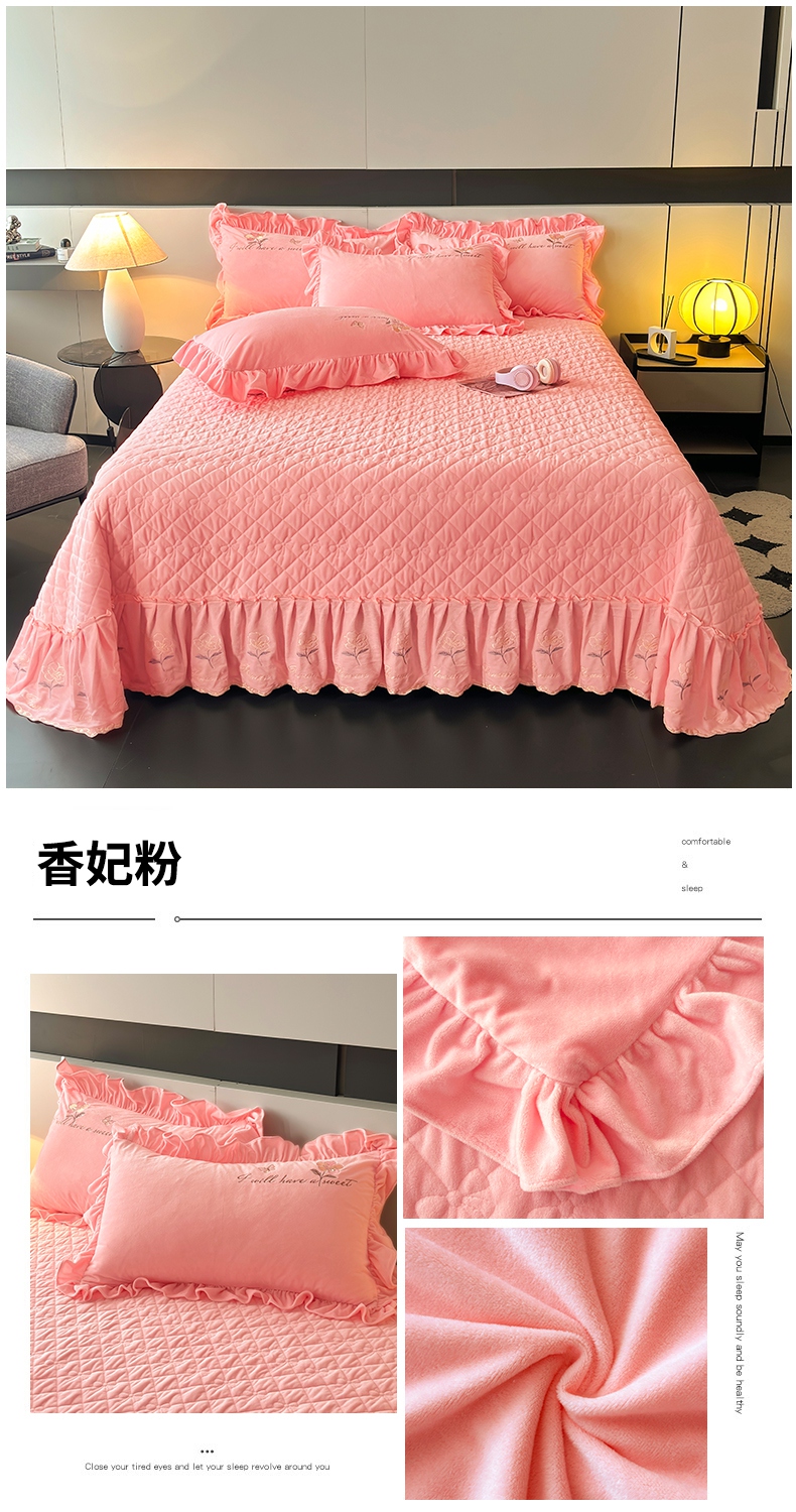 2024新款A类依恋宝宝绒韩版床盖 香妃粉
