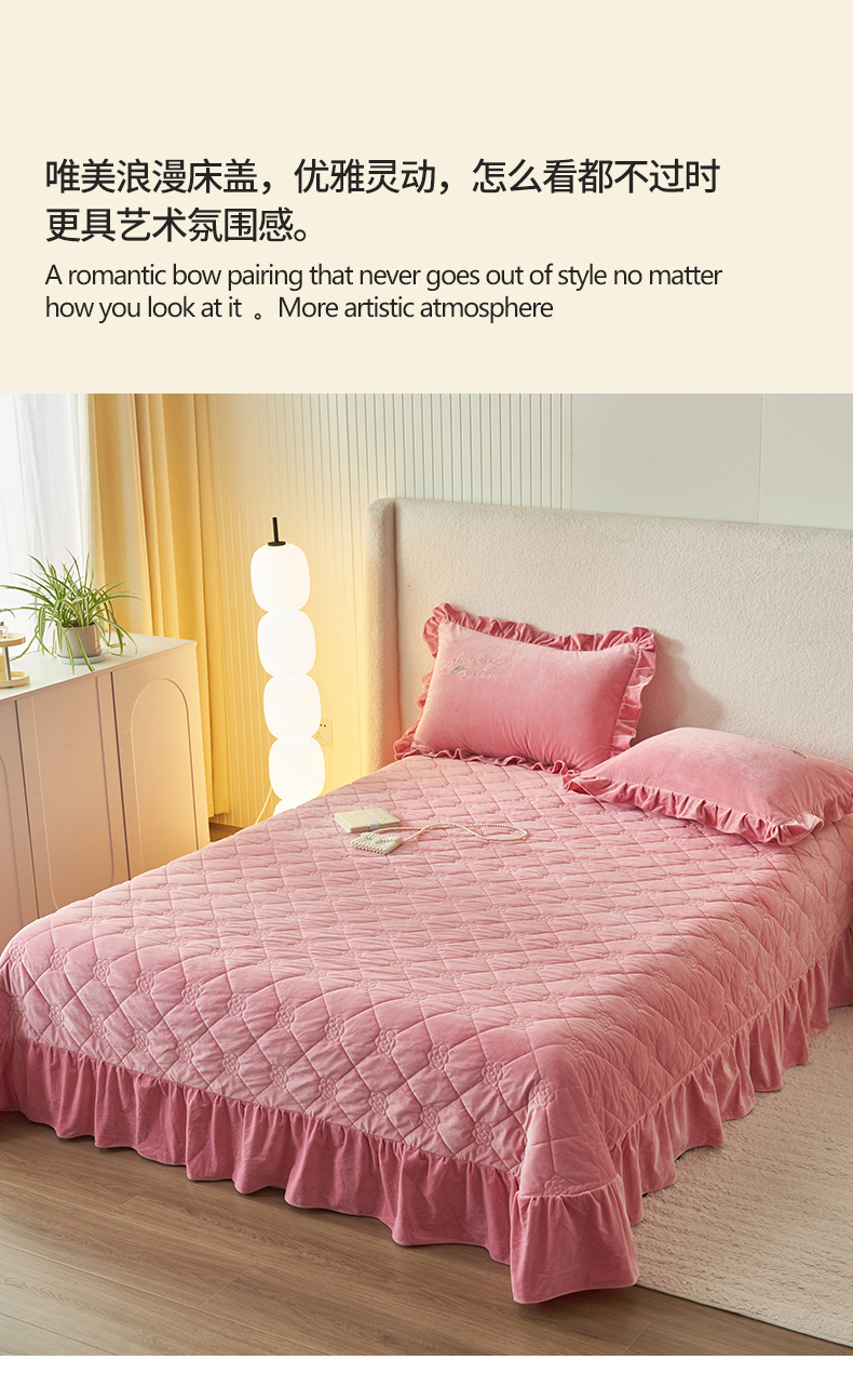 (总)恒爱 2022秋冬水晶绒翩翩花舞夹棉单床裙,大红色,豆沙红,橄榄绿,公主粉,桔色,咖啡色,孔雀绿,拉菲红,罗兰紫,玫红色,美人玉,米白色,米驼色,抹茶绿,浅灰色,紫色