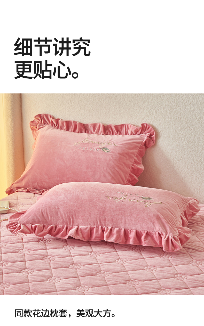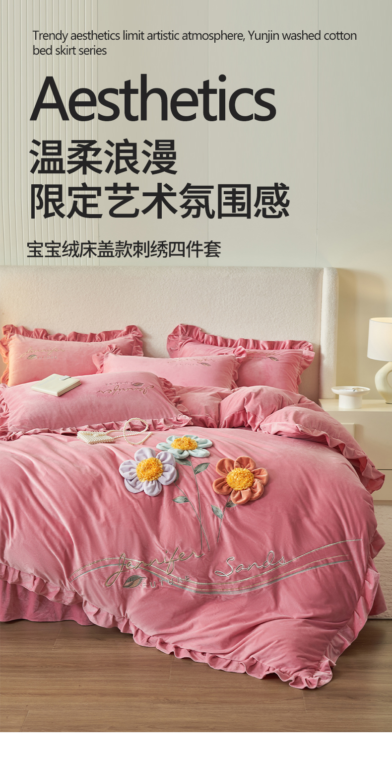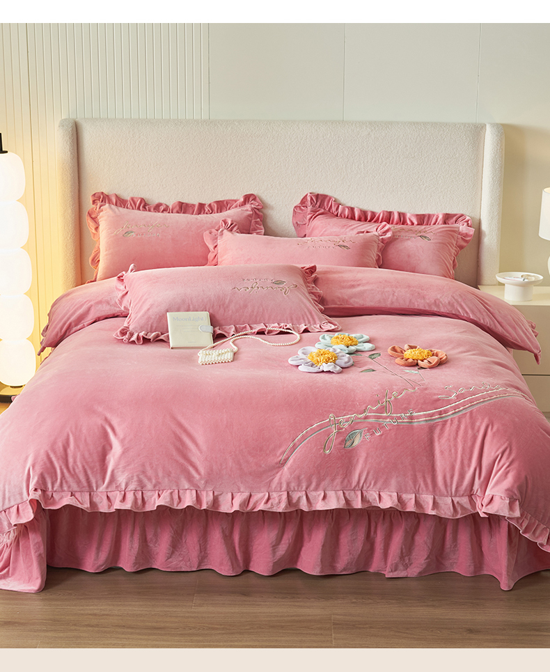 (总)恒爱家纺 2025新款牛奶绒贴布绣夹棉床裙四件套,豆沙红,浪漫紫,天空蓝,温馨粉,象牙白