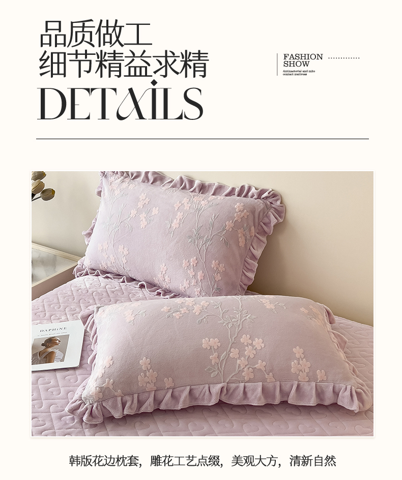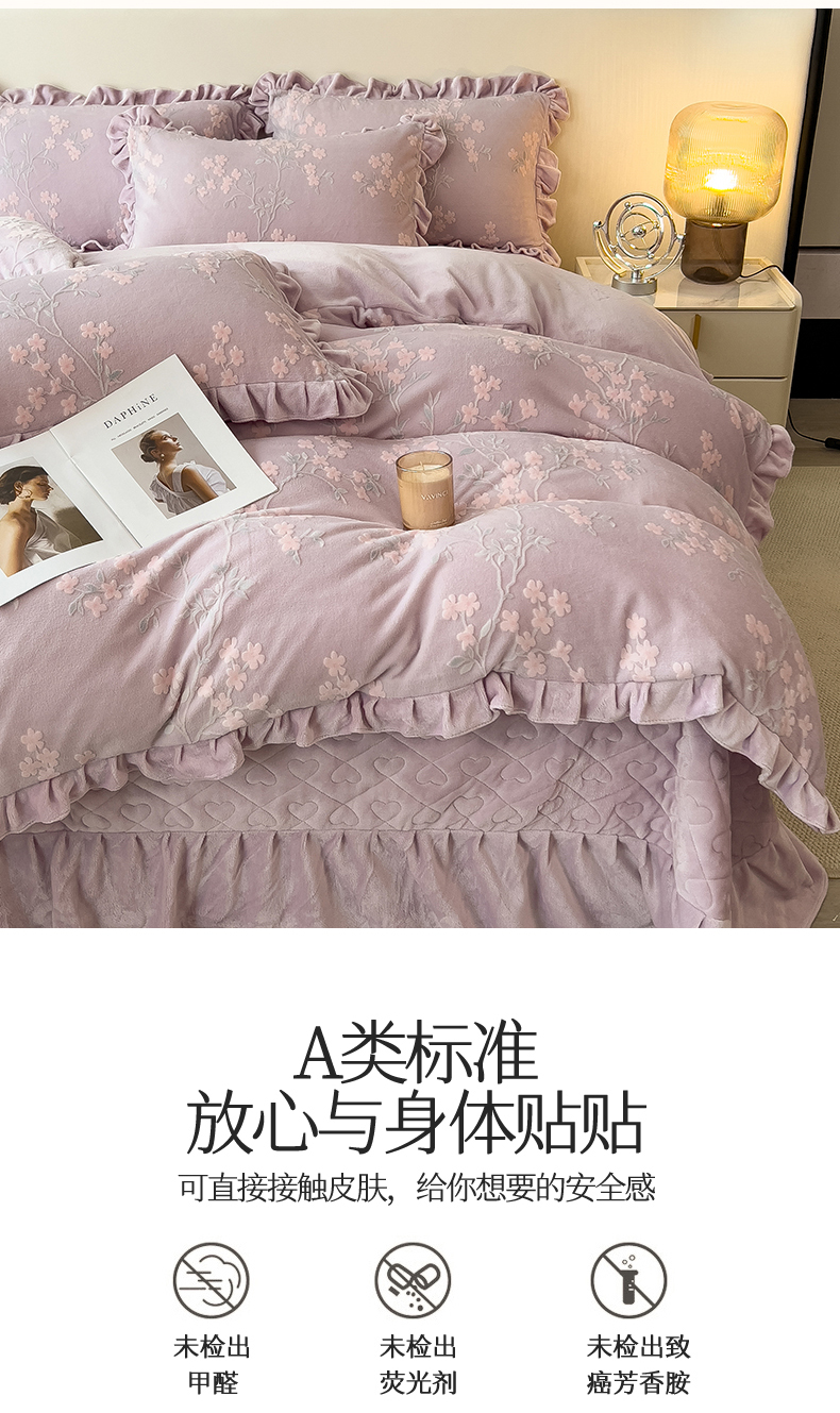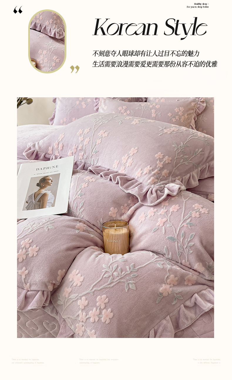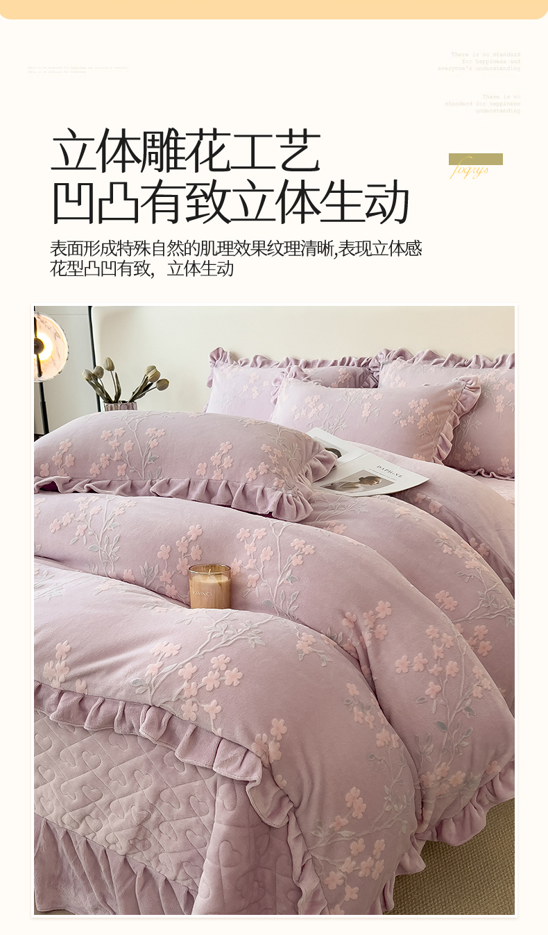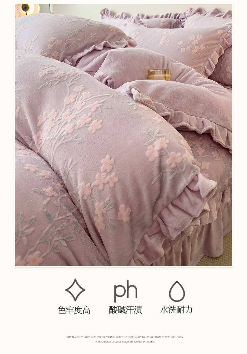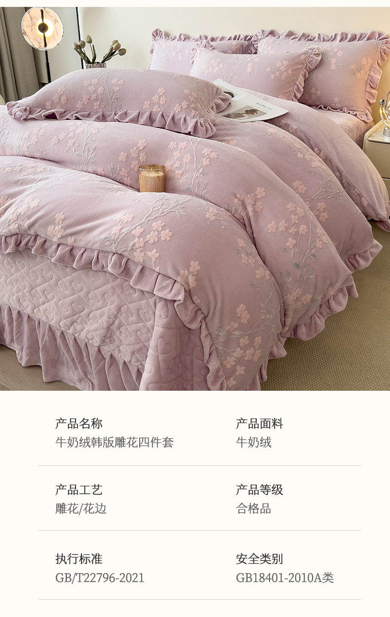 商品名称:2024新品A类牛奶绒韩版雕花四件套 梨花海棠-紫