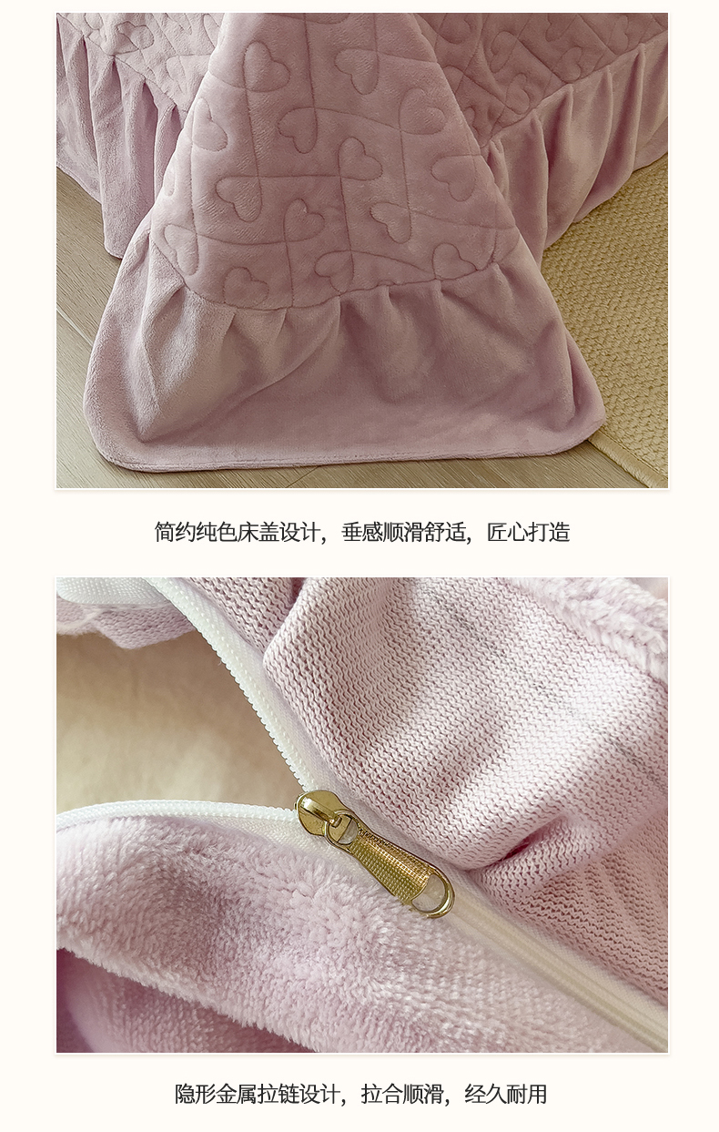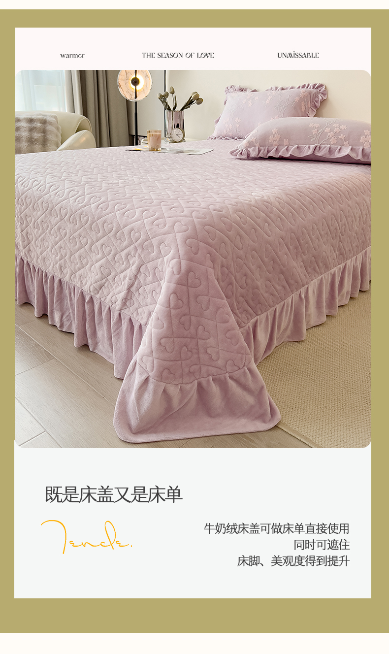 (总)恒爱家纺 2025新款牛奶绒贴布绣夹棉床裙四件套,豆沙红,浪漫紫,天空蓝,温馨粉,象牙白