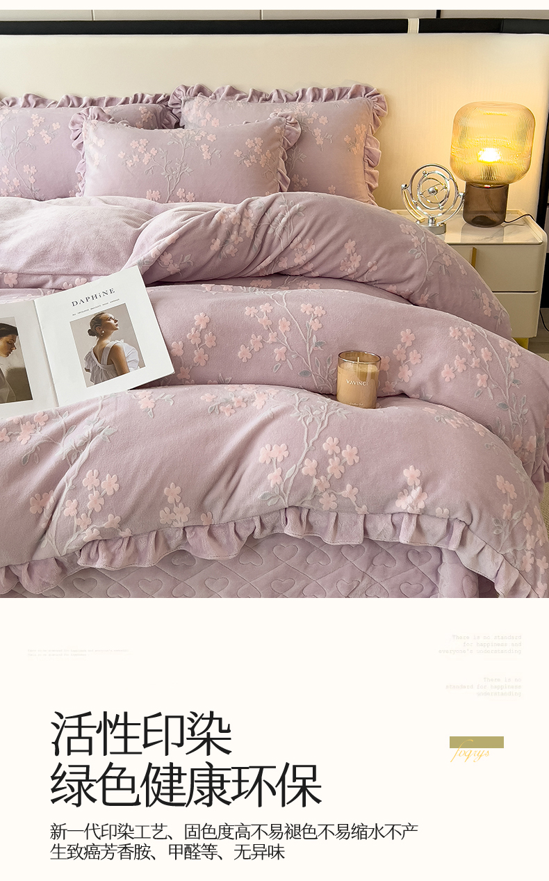 (总)恒爱 2022秋冬水晶绒翩翩花舞夹棉床裙四件套,大红色,豆沙红,橄榄绿,公主粉,桔色,咖啡色,孔雀绿,拉菲红,罗兰紫,玫红色,美人玉,米白色,米驼色,抹茶绿,浅灰色,紫色