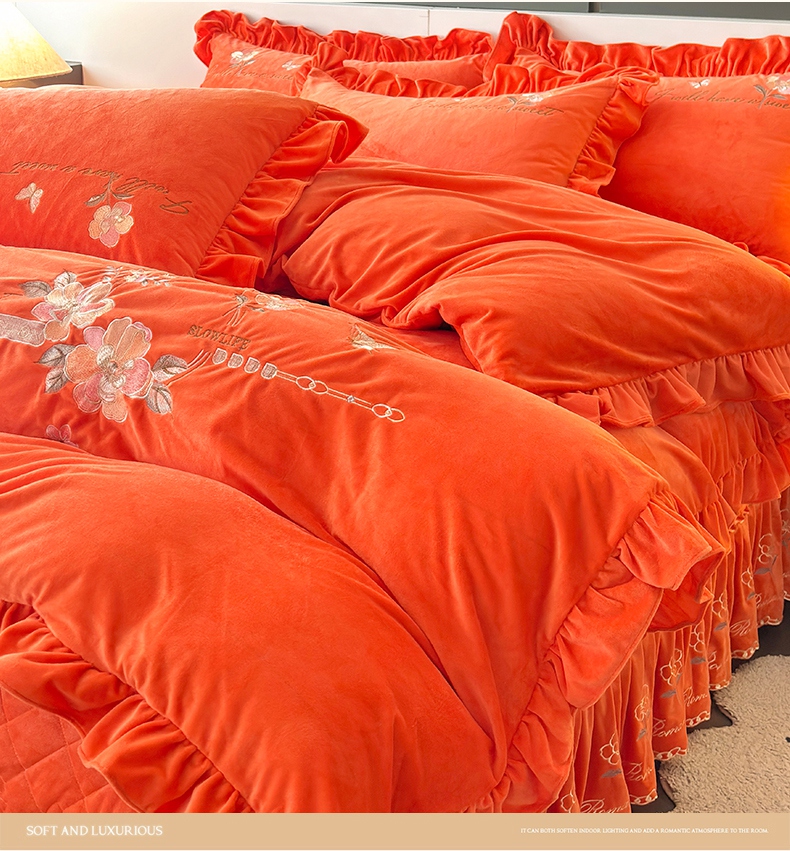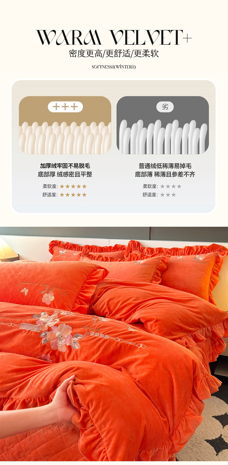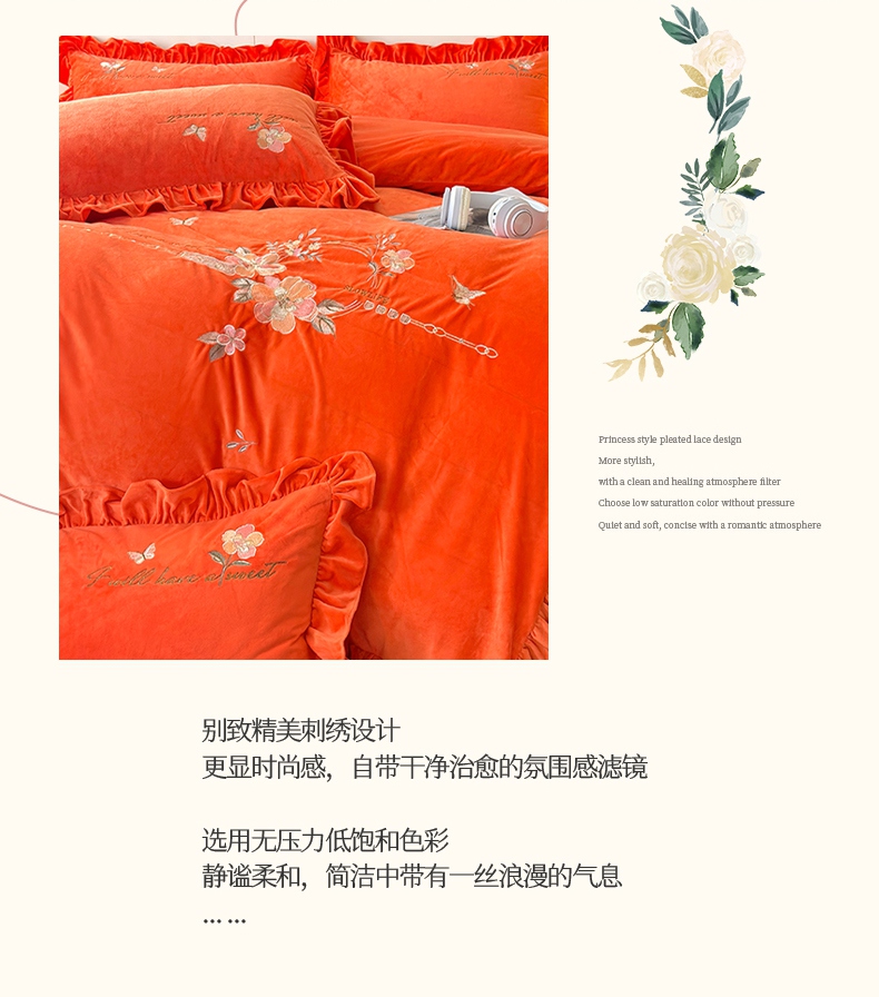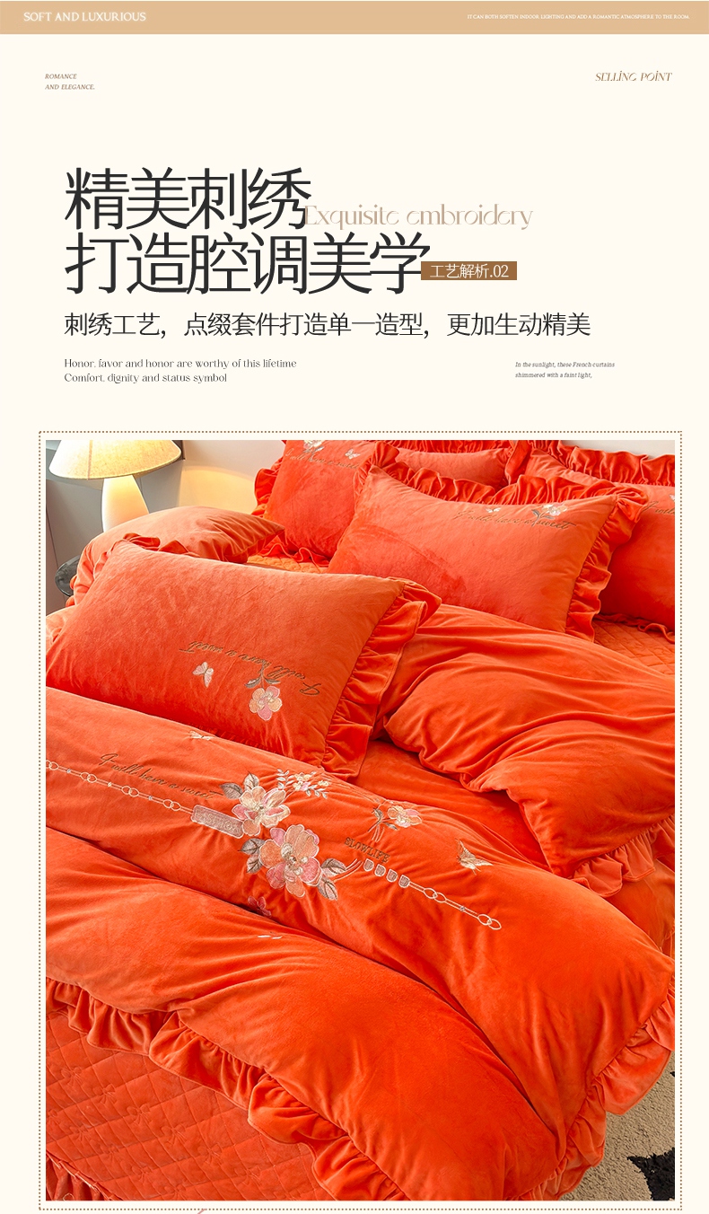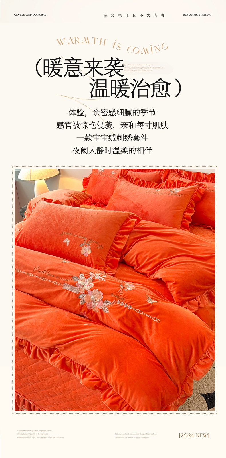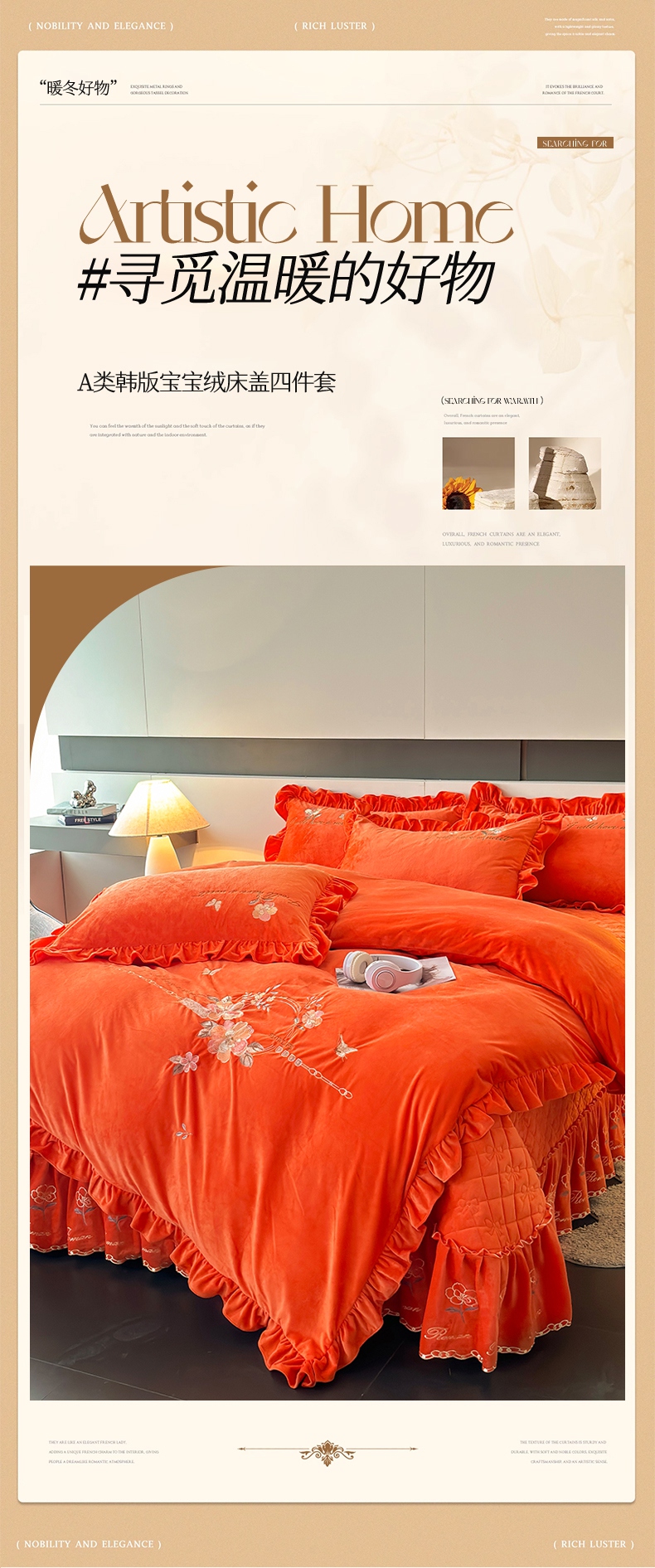 当前位置: 91家纺网 > 商品网购 > 床品套件 > 四件套 > 宝宝绒四件套 > 2024新品A类依恋宝宝绒韩版四件套 美人橙