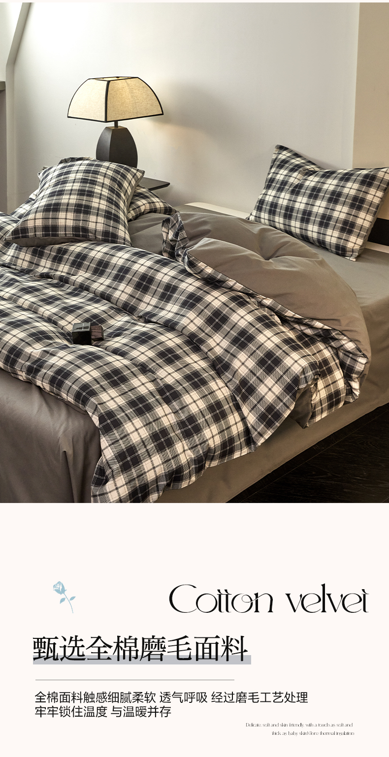 商品名称:雅居纺家纺 2024新款全棉印花磨毛四件套 旋律-灰格