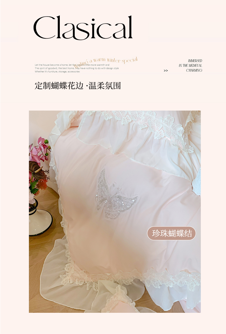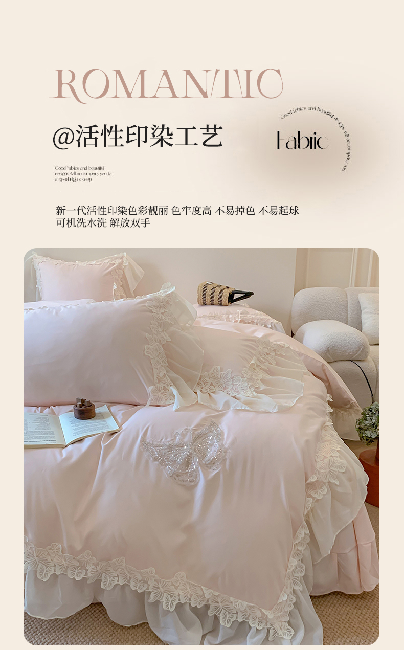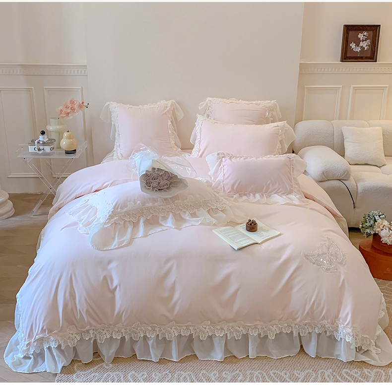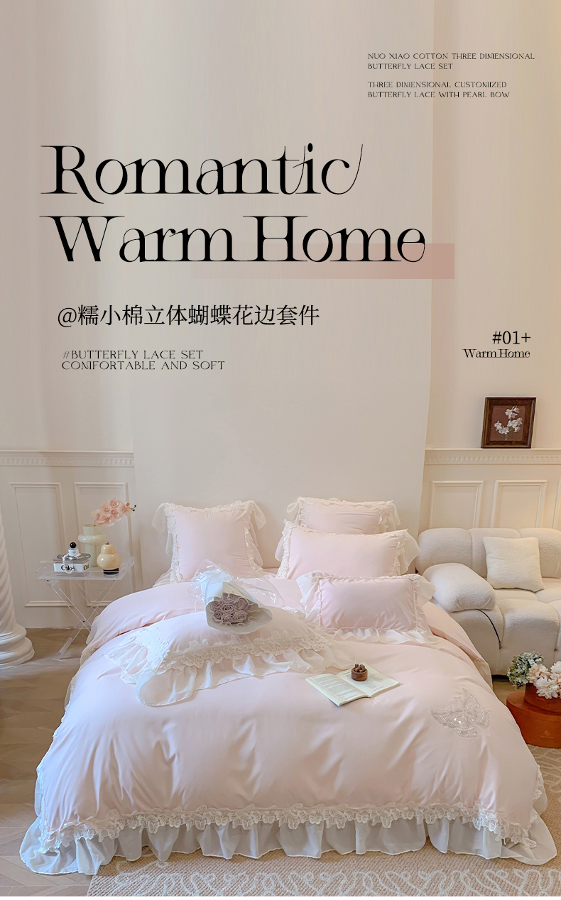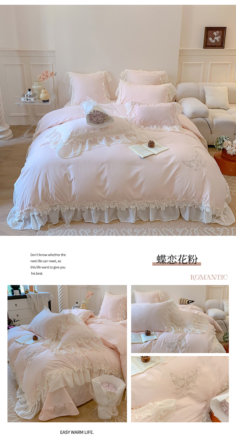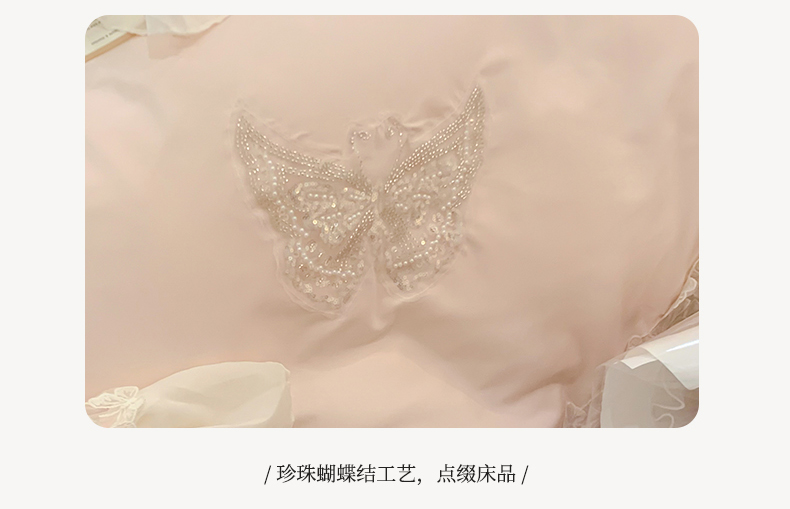 商品名称:吾欢心 2025新款糯小棉立体蝴蝶花边四件套-蝶恋花系列 蝶恋花粉