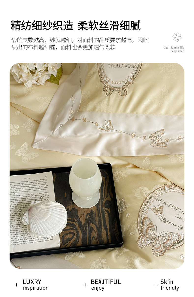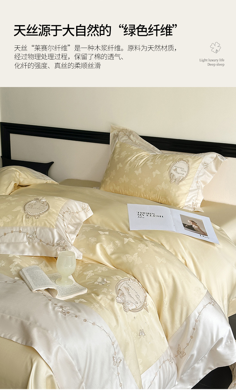 爱缦 2024新款100支兰精天丝棉四件套--蝶舞星光系列 雪融冰晶