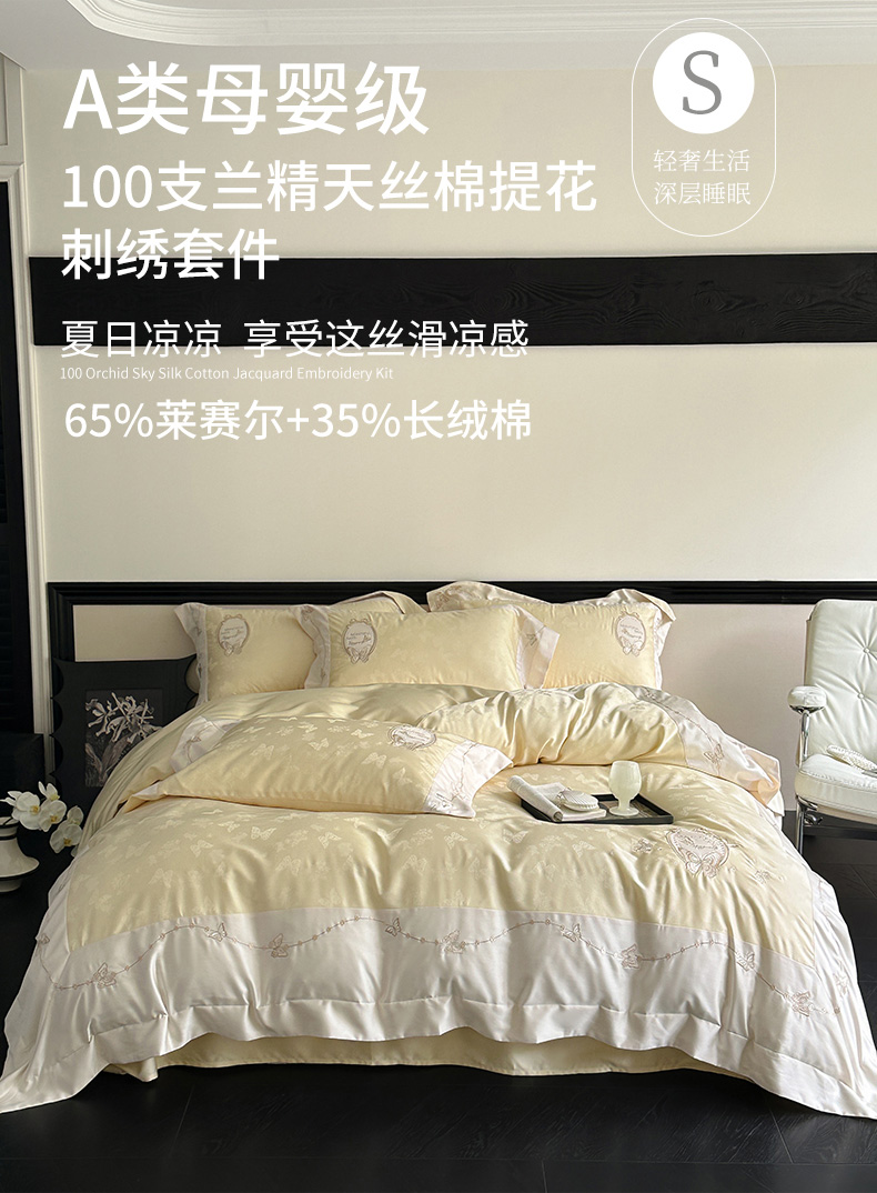商品名称:爱缦 2024新款100支兰精天丝棉四件套--蝶舞星光系列 雪融冰晶