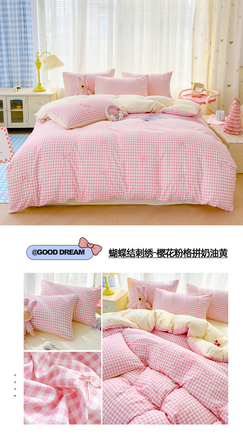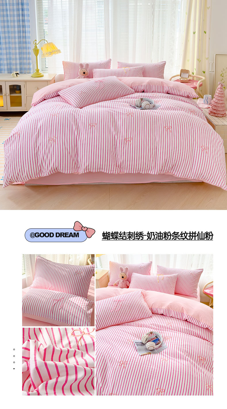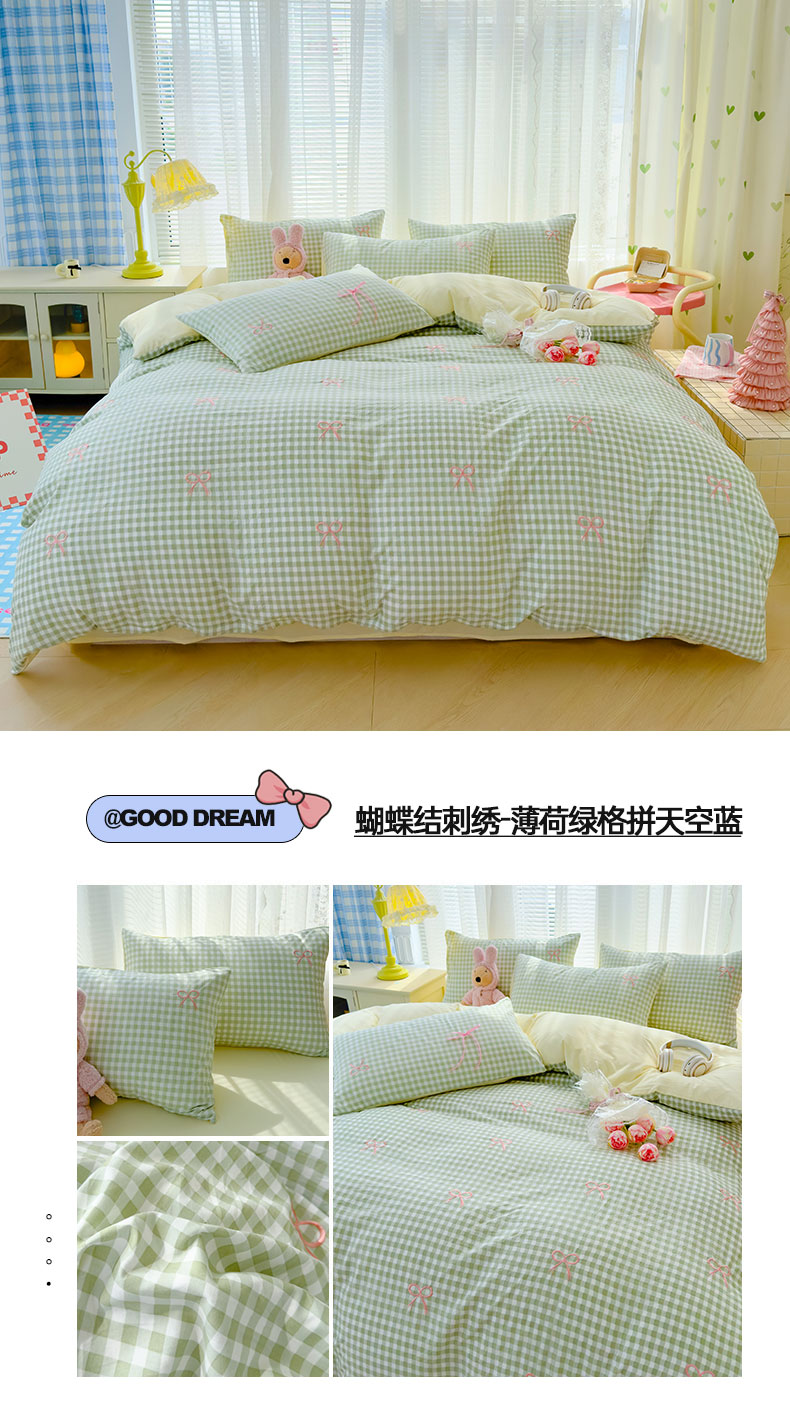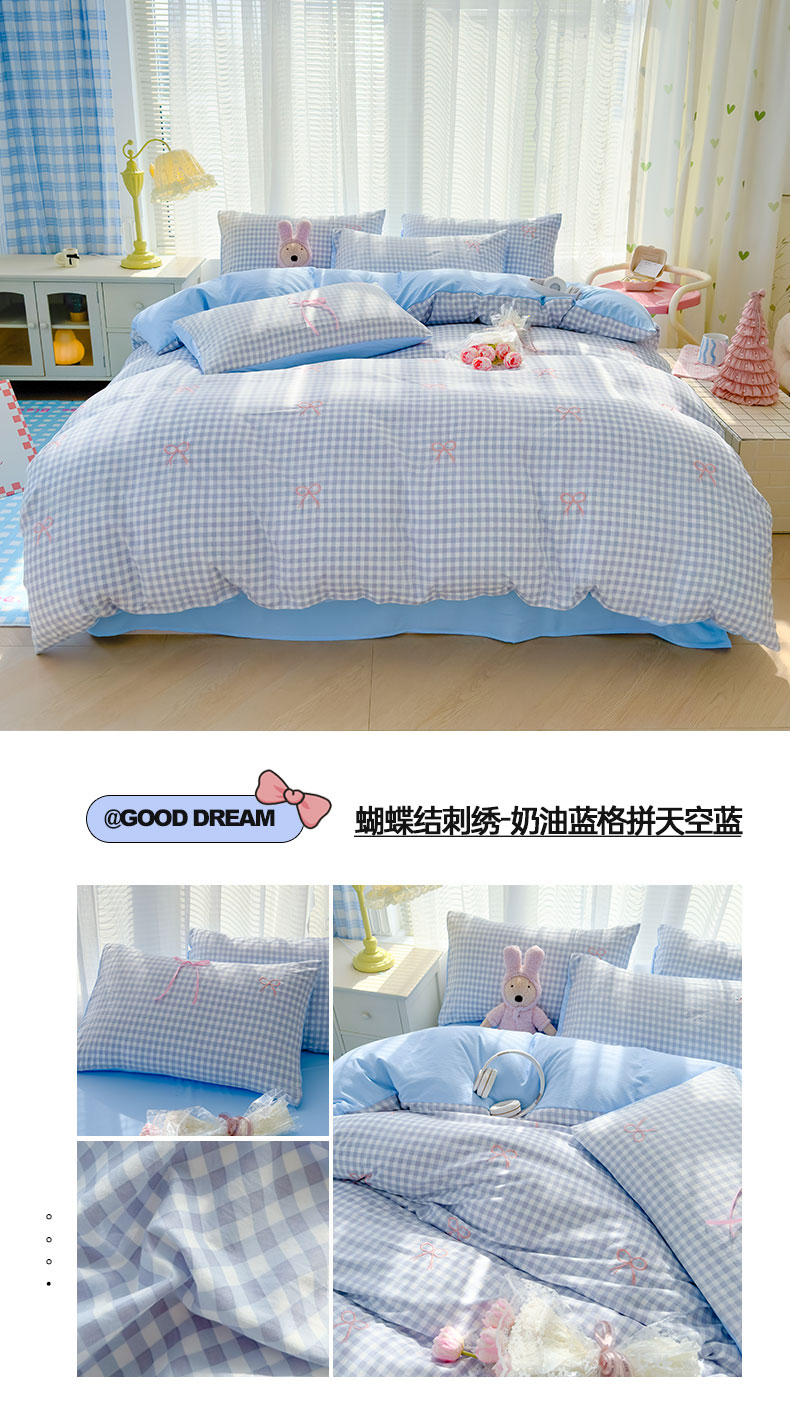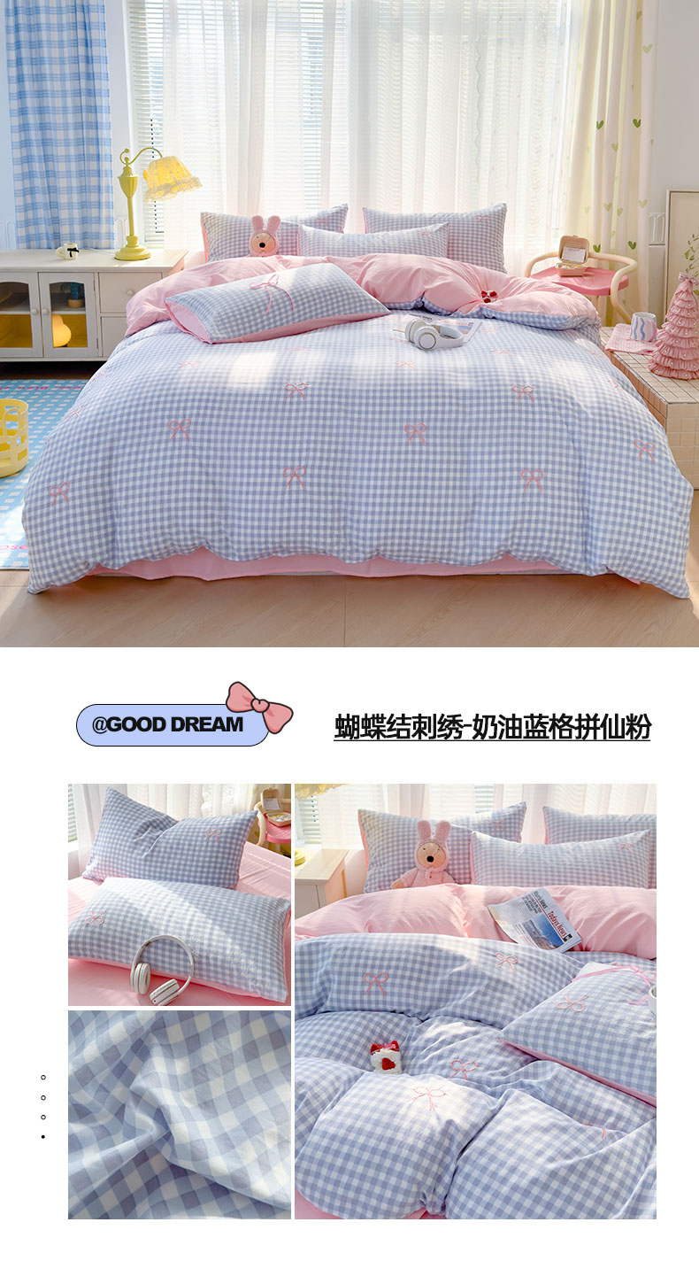 (总)2025新款A类水洗双层纱蝴蝶结刺绣三件套四件套-成人床