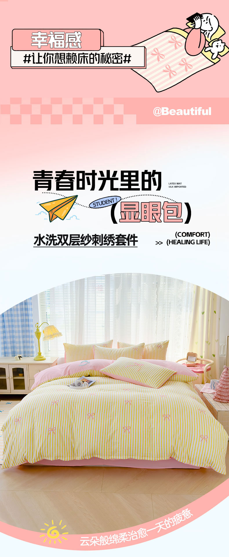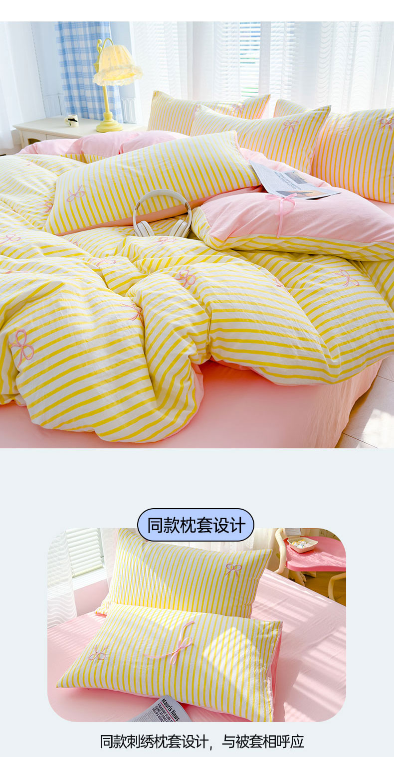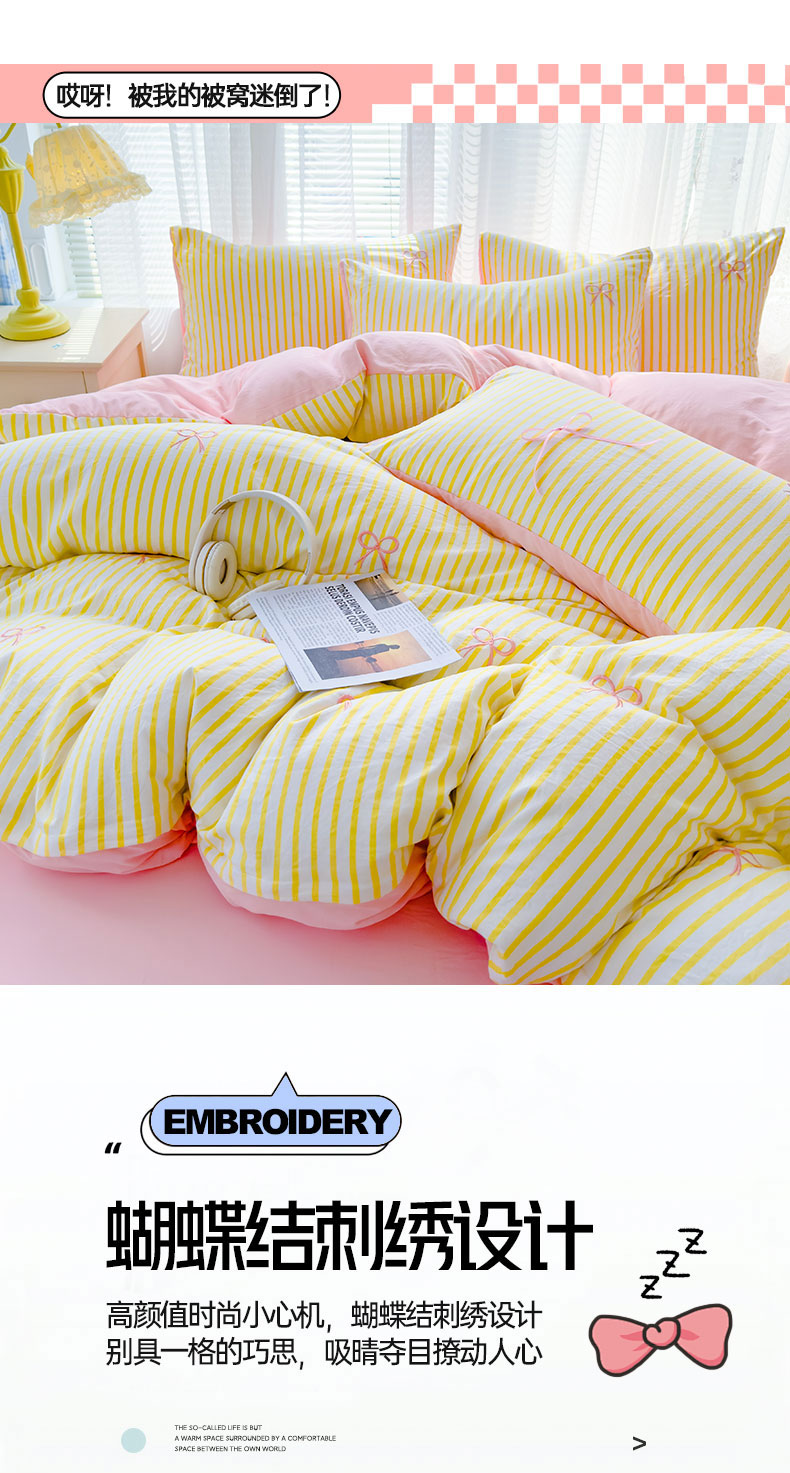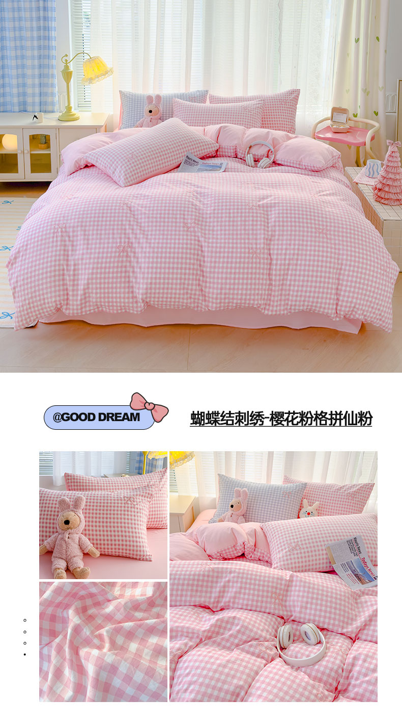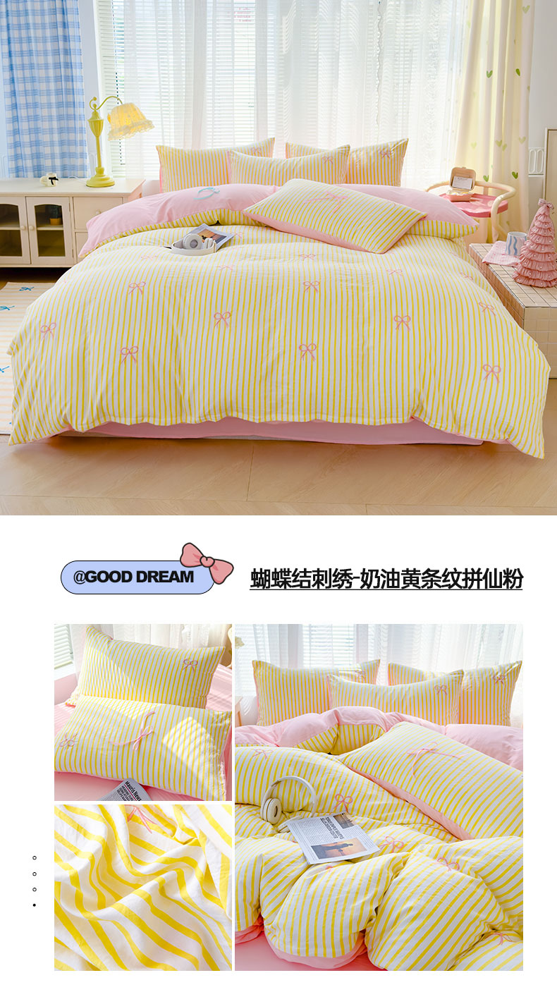 (总)2025新款A类水洗双层纱蝴蝶结刺绣三件套四件套-成人床