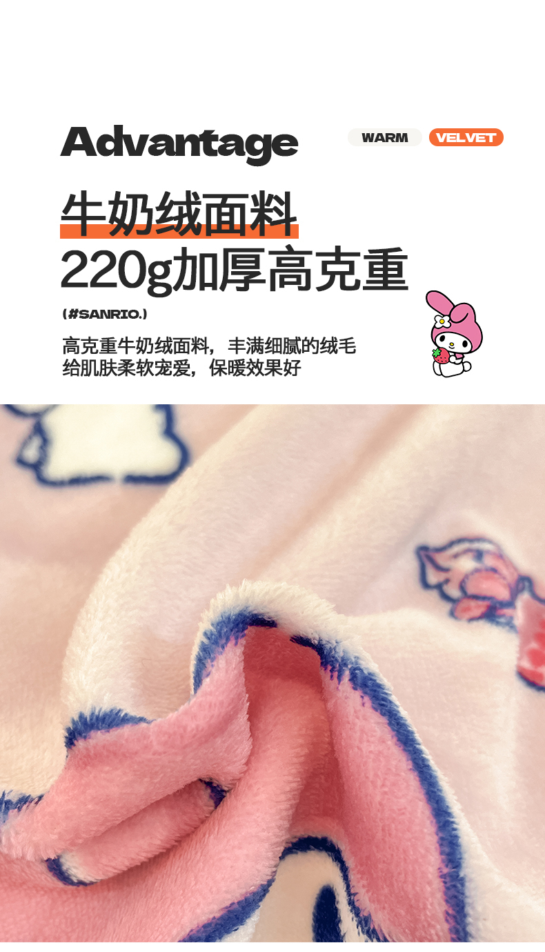 当前位置: 91家纺网 > 商品网购 > 床品套件 > 四件套 > 牛奶绒四件套 > 桃子家居 2024新款三丽鸥卡通加厚高克重200克牛奶绒系列四件套 绒三丽鸥-莓莓美乐蒂