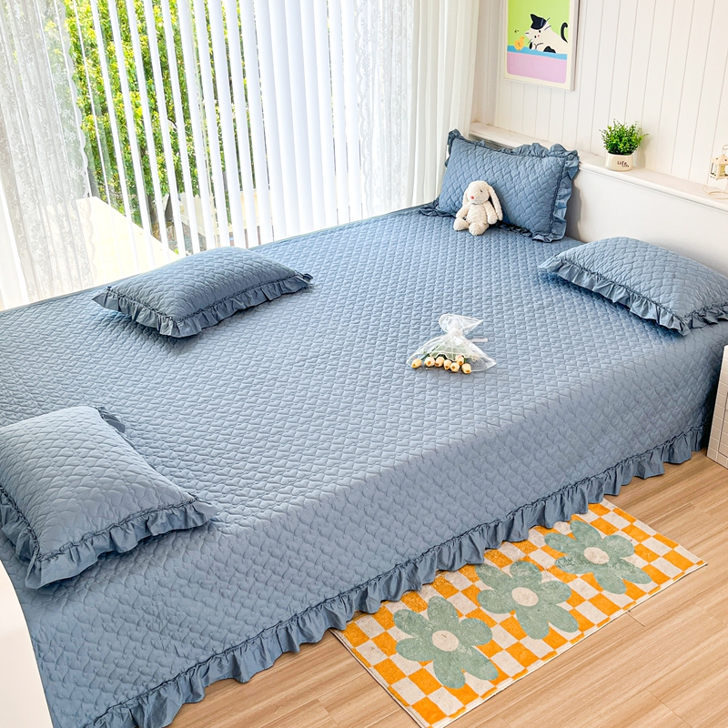 暖居 2024支持定制纯棉榻榻米四件套全棉农村单件大炕盖纯色床单三件套系列 天空蓝