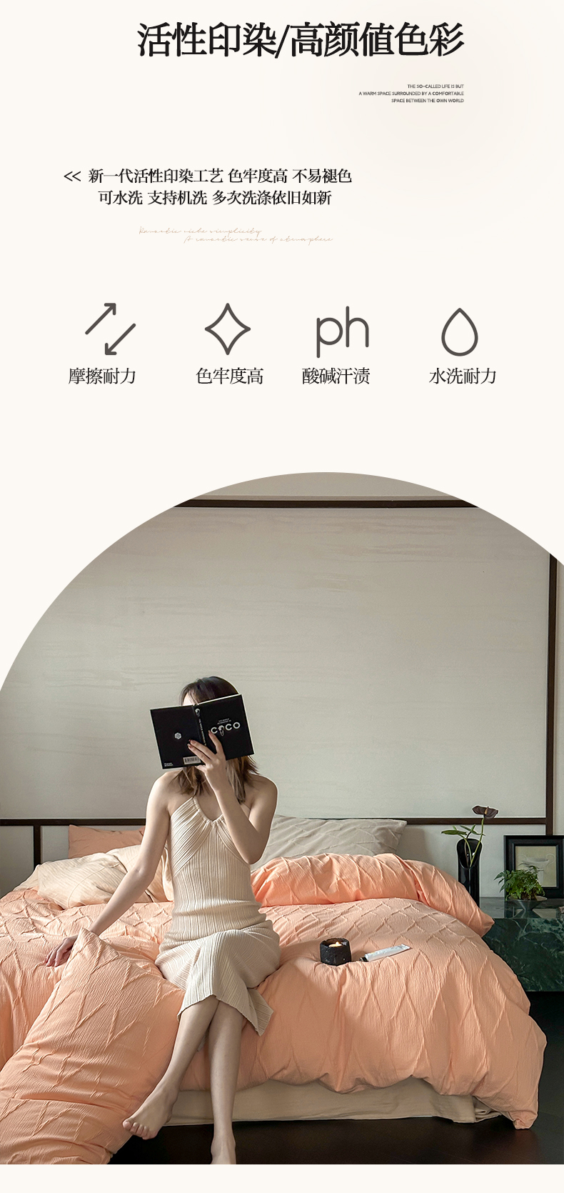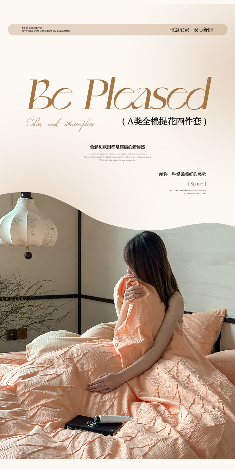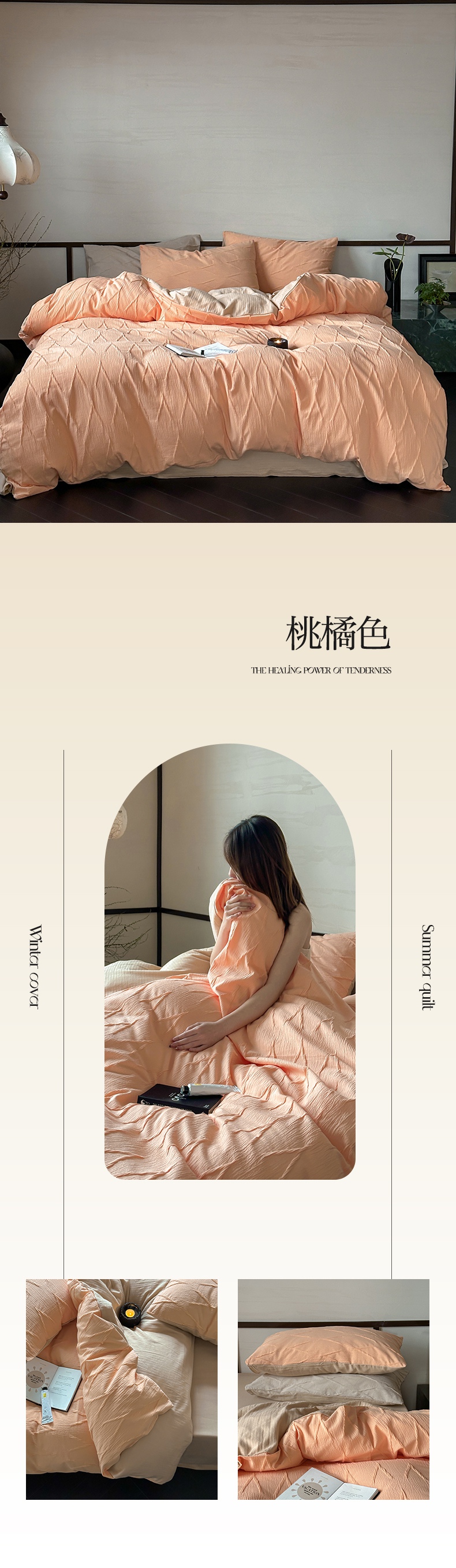 商品名称:2024新款全棉提花四件套-V克托瑞 桃橘色