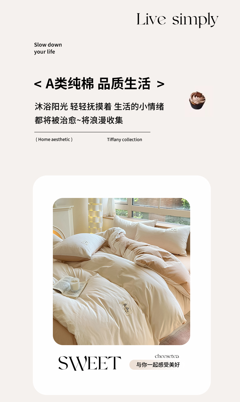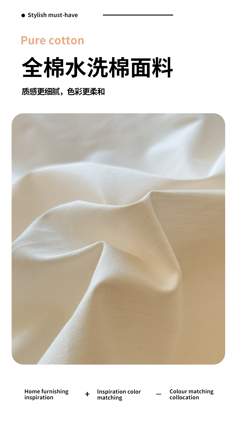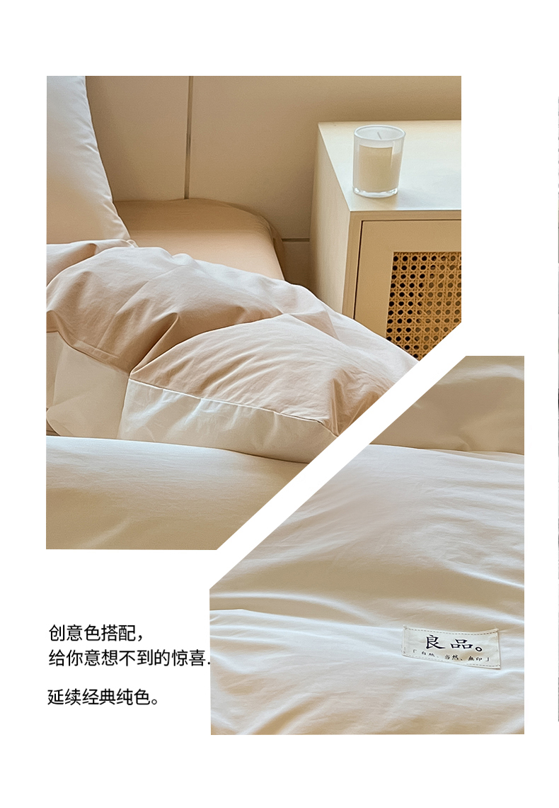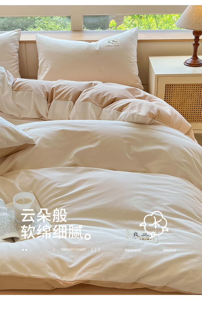 商品名称:禧澜庭 2024新款纯棉全棉水洗棉斜纹无印风纯棉四件套三件套 奶昔白+卡其