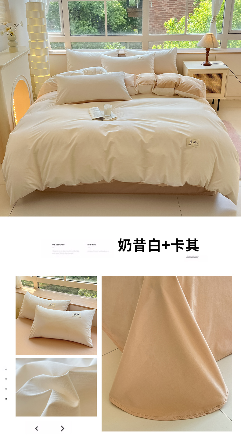 (总)禧澜庭 2025新款纯棉全棉水洗棉斜纹无印风贴标四件套三件套,梵星蓝+奶黄,湖蓝+梧桐灰,抹茶绿+奶茶,奶昔白+卡其,奶昔白+抹茶绿,奶油粉+梧桐灰,驼色+奶茶色,银灰+梧桐灰,优雅紫+香叶粉