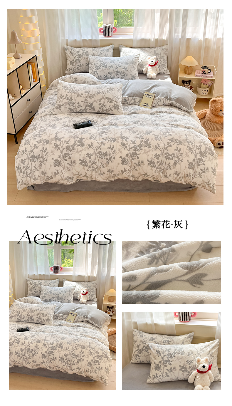 商品名称:莱茵家居 2024新款a类加厚立体雕花牛奶绒四件套 繁花-灰