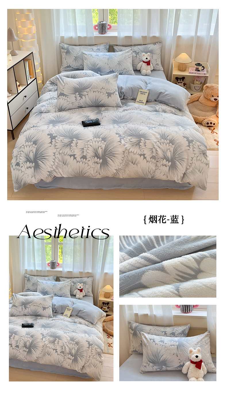 商品名称:莱茵家居 2024新款a类加厚立体雕花牛奶绒四件套 烟花-蓝