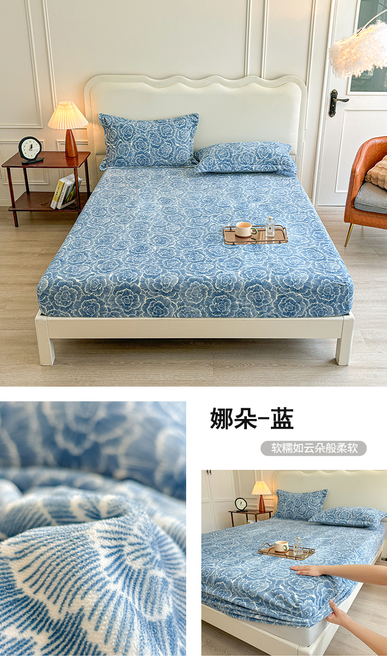 菡宝 2024新款8斤240g全消光牛奶绒系列单床笠 娜朵-蓝