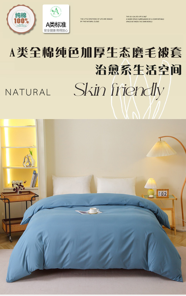商品名称:晶缦家纺 2024新款全棉13376纯色喷气全棉磨毛单品被套 暖芸馨-蝶翅蓝