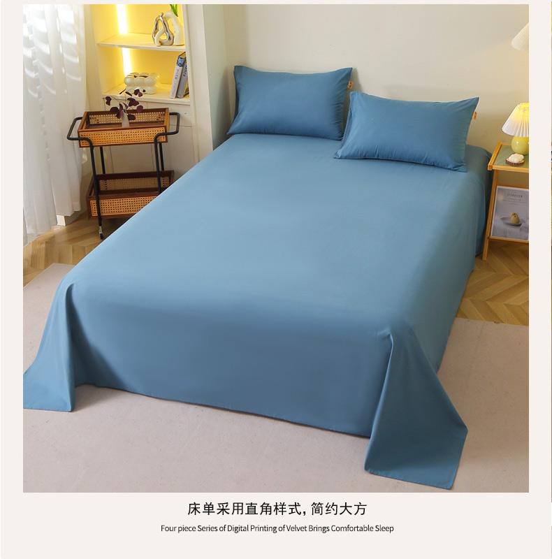 晶缦家纺 2024新款全棉13376纯色喷气全棉磨毛单品床单 暖芸馨-蝶翅蓝