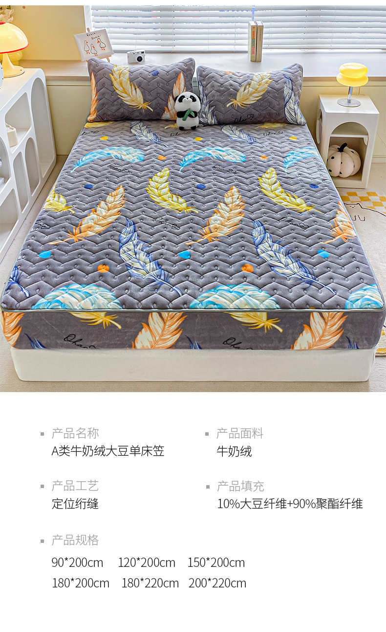 商品名称:卡伦家纺 2025新款A类牛奶绒大豆纤维抗菌夹棉床笠 轻羽飞扬
