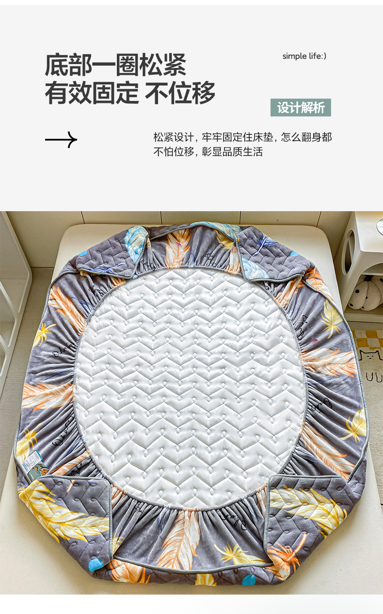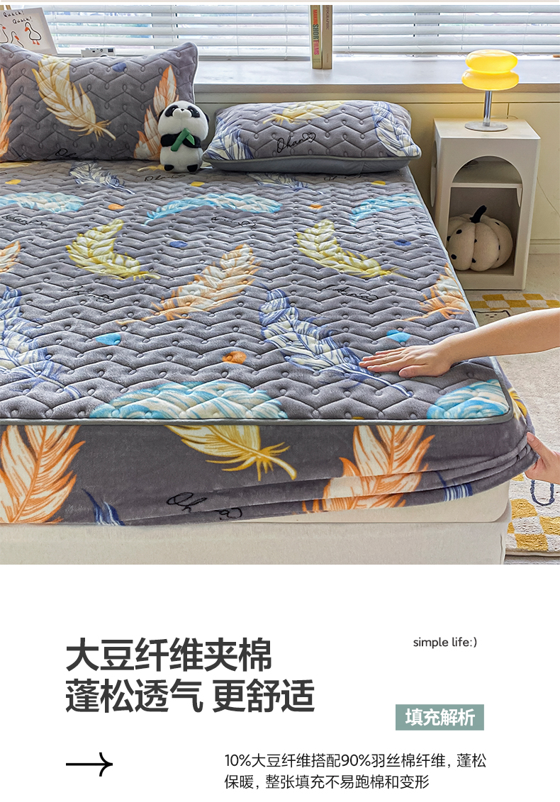 卡伦家纺 2025新款A类牛奶绒大豆纤维抗菌夹棉床笠 轻羽飞扬