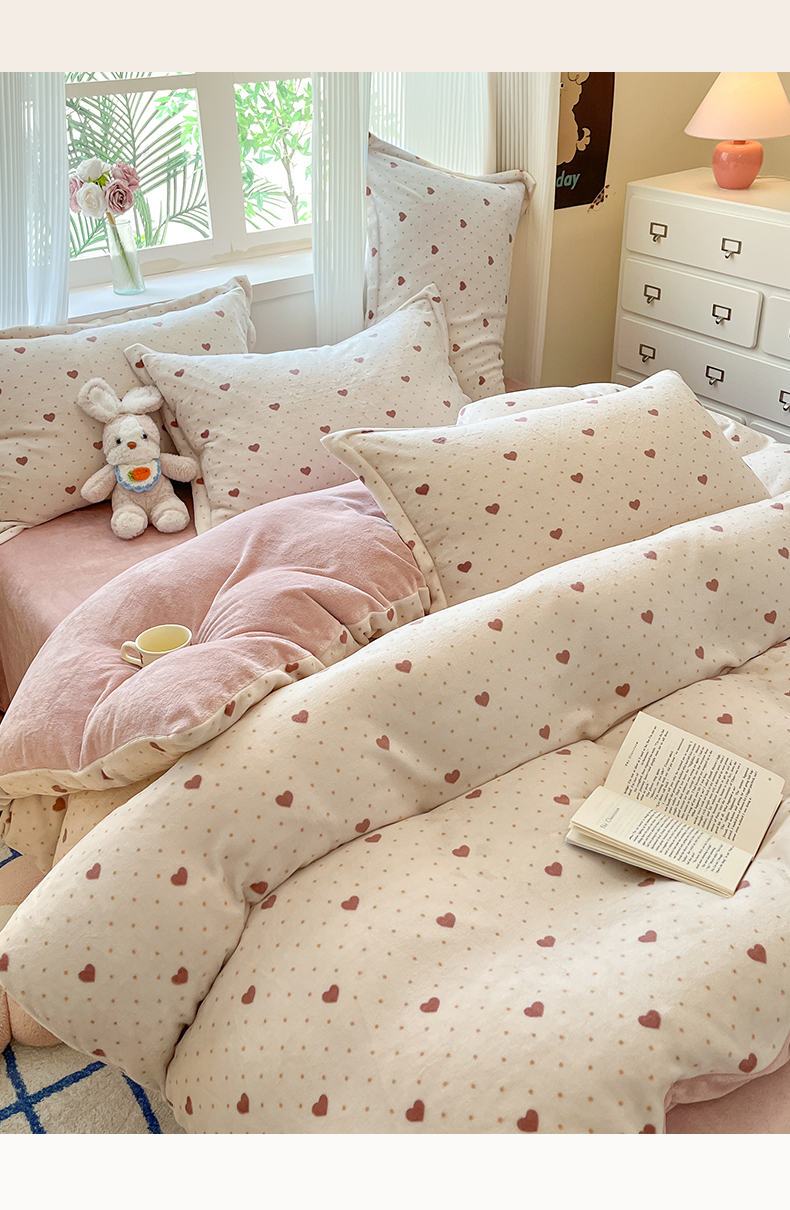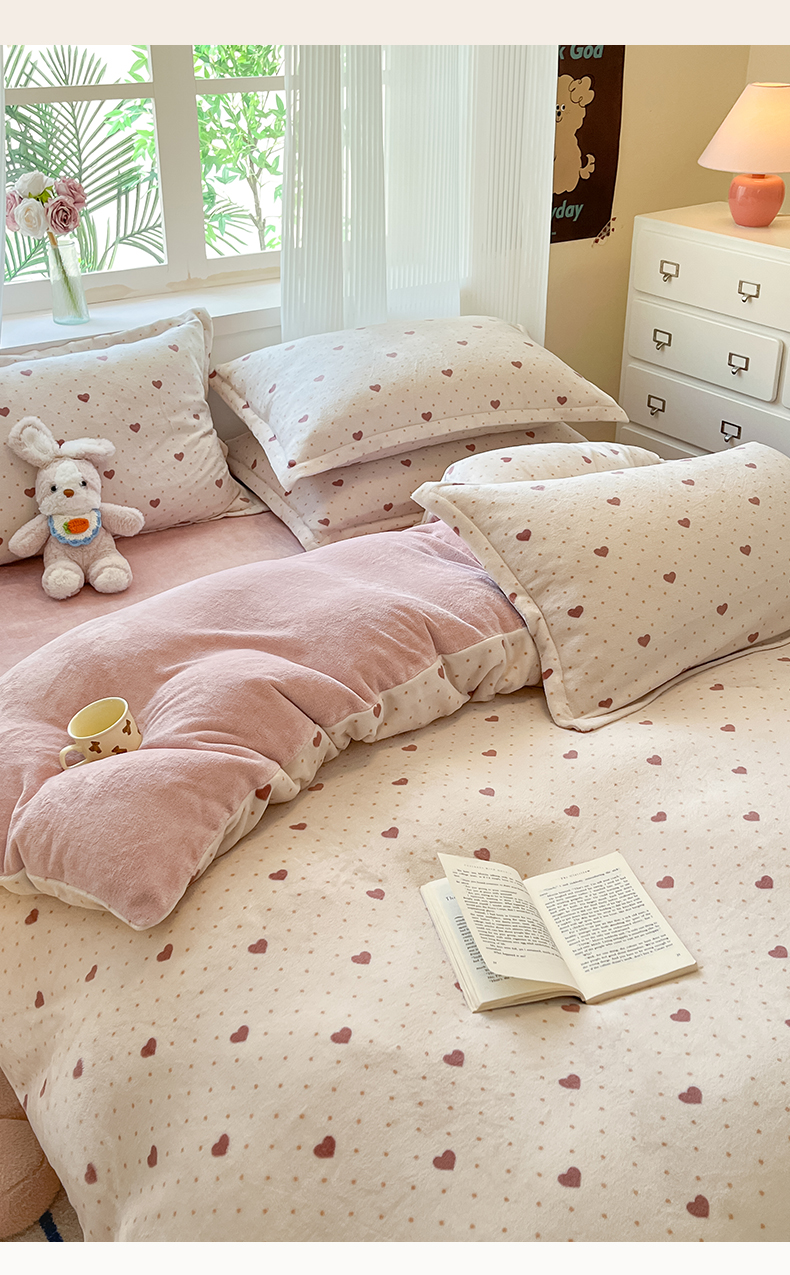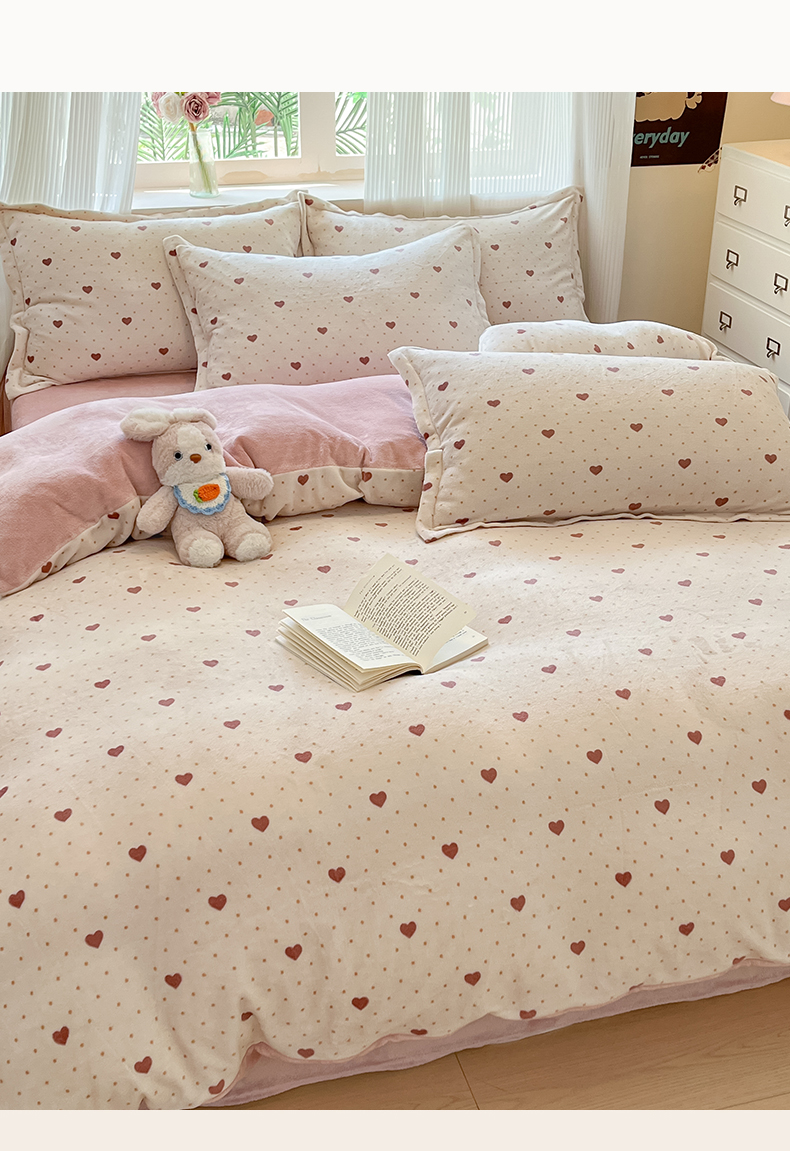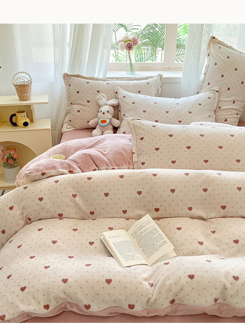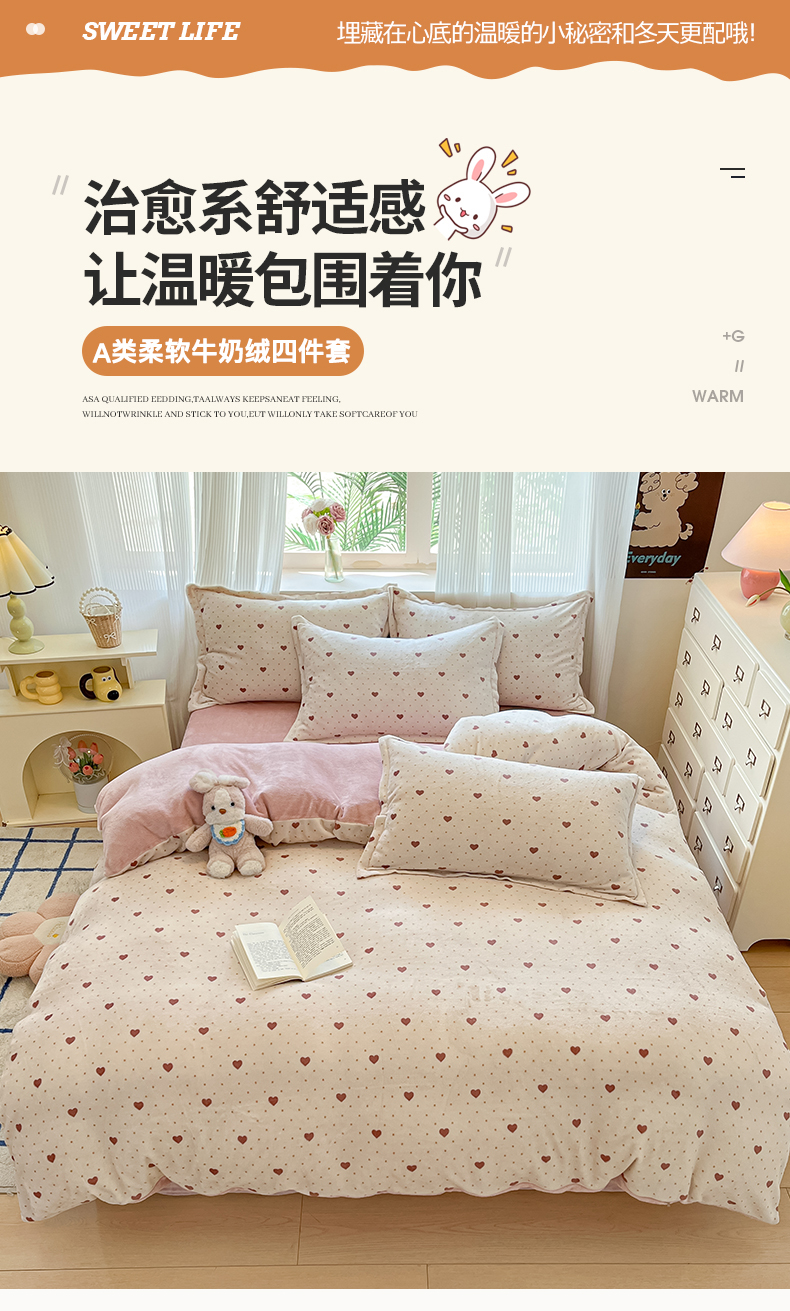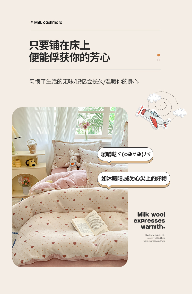 当前位置: 91家纺网 > 商品网购 > 床品套件 > 四件套 > 牛奶绒四件套 > 寐居家纺 2024新款A类小清新牛奶绒印花四件套 波点爱心