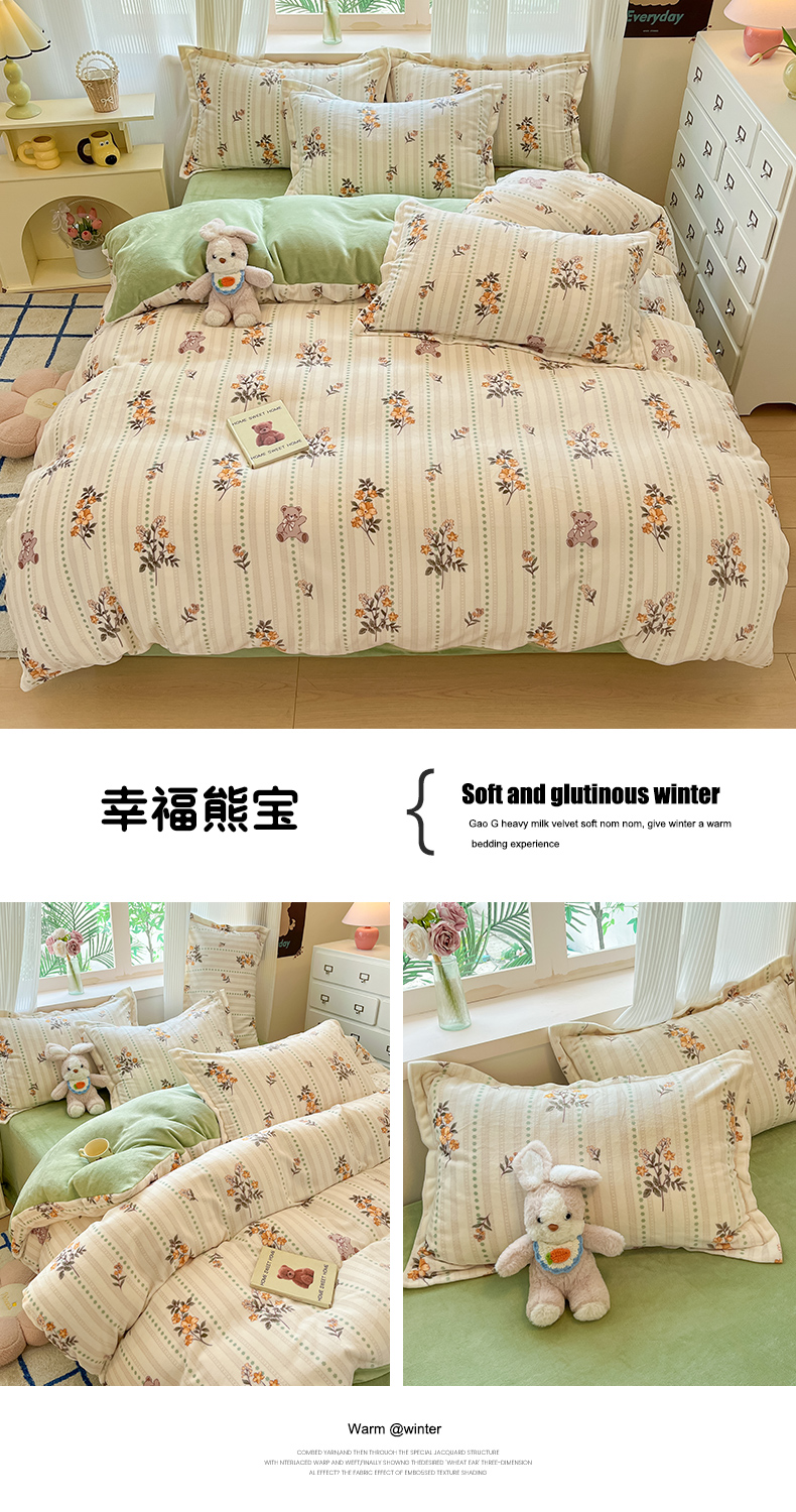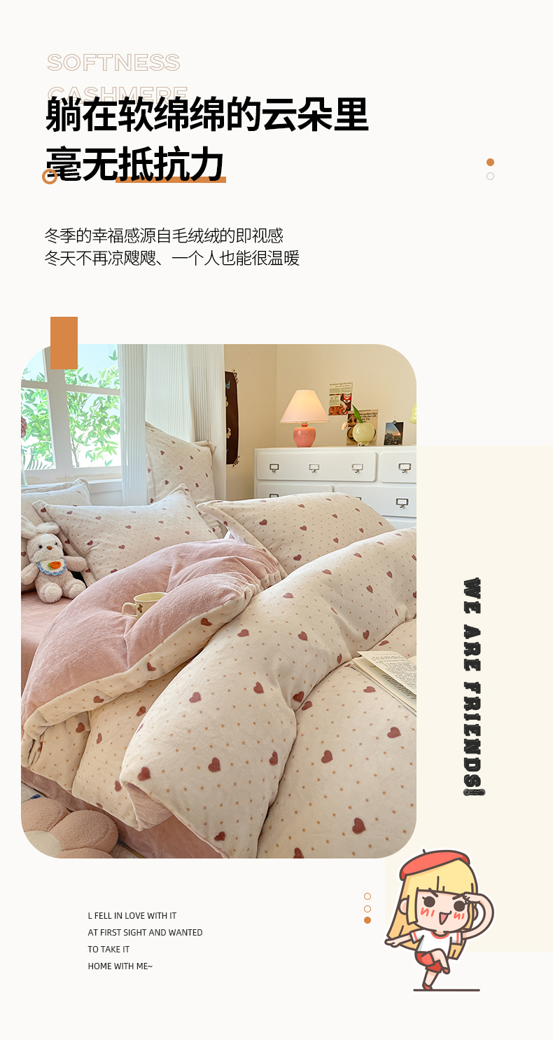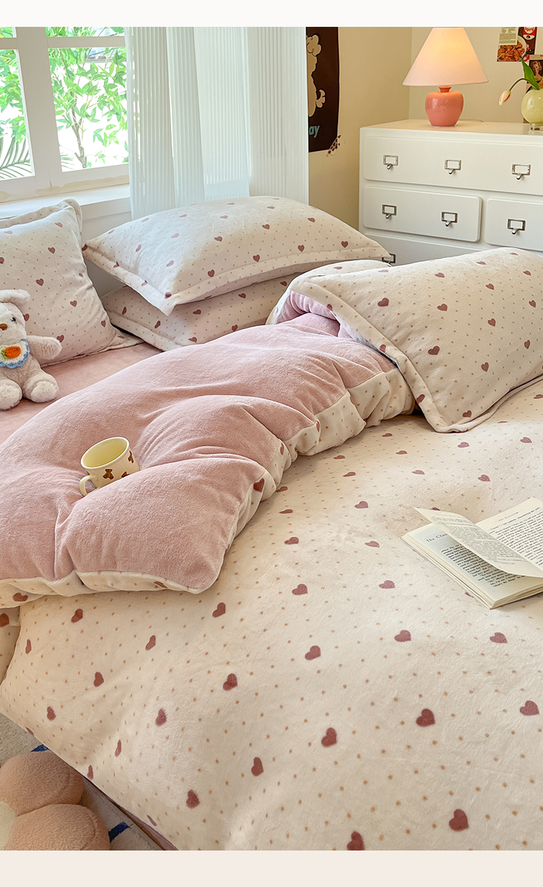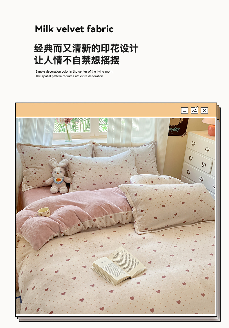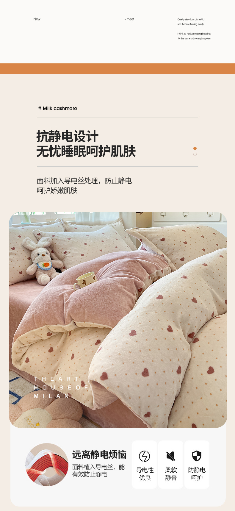 当前位置: 91家纺网 > 商品网购 > 床品套件 > 四件套 > 牛奶绒四件套 > 寐居家纺 2024新款A类小清新牛奶绒印花四件套 波点爱心